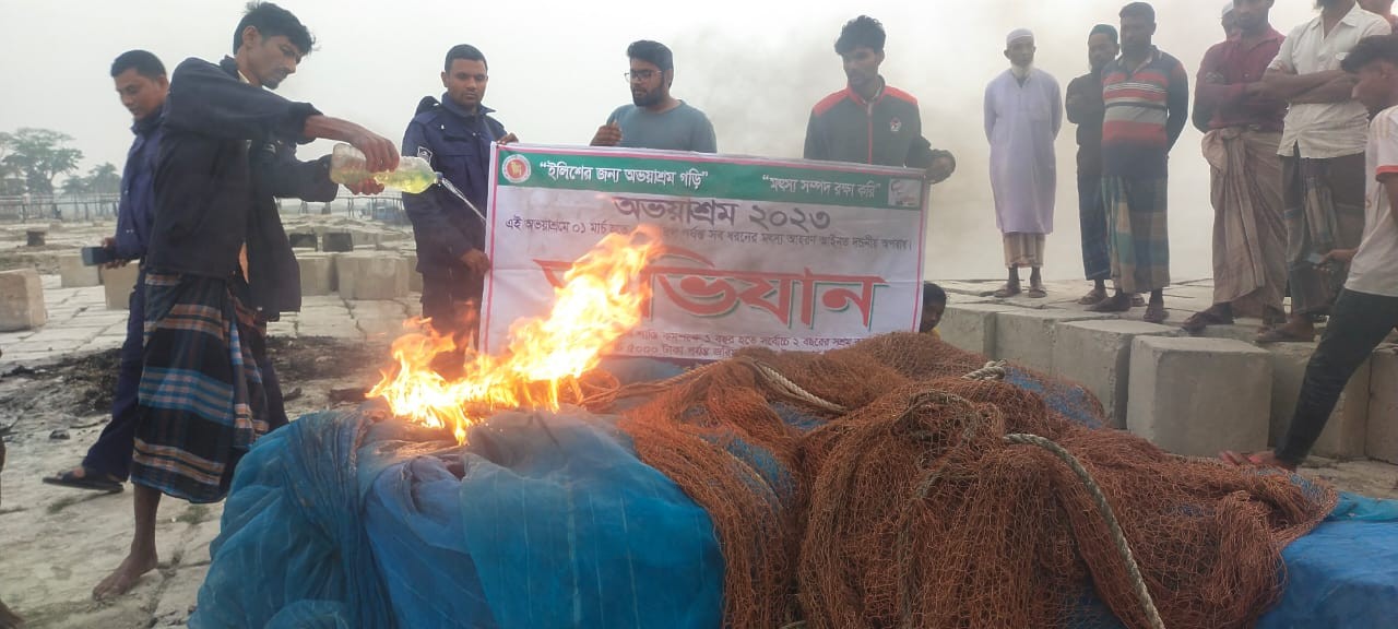 তজুমদ্দিন উপজেলা ফিশারিজ কর্মকর্তা আল আমিন স্থানীয় সাংবাদিকদের জানান, বৃহস্পতিবার রাতভর মেঘনা নদীর বিভেন্ন স্থানে তারা অভিযান চালিয়ে বোরহান উদ্দিনের হাসান নগর ইউনিয়ের বাসিন্দা ৪ জেলেকে আটক এবং অবৈধ জাল ও নৌকা জব্দ করা হয়। শুক্রবার সকালে আটককৃত জেলেদের উপজেলা নির্বাহী অফিসার ও নির্বাহী ম্যাজিষ্ট্রেট মরিয়ম বেগম ভ্রাম্যমান আদালতের মাধ্যমে ২ জেলেকে ১০হাজার টাকা অর্থ দন্ড প্রদান করেন এবং অপ্রাপ্ত ২জনকে তাদের অভিবাবকের মুছলেকা রেখে ছেড়ে দেন । এছাড়া জব্দকৃত অবৈধ জাল আগুনে পুড়িয়ে ধ্বংস করা হয়। নৌকাগুলো মৎস অফিসের হেফাজতে রয়েছে।
