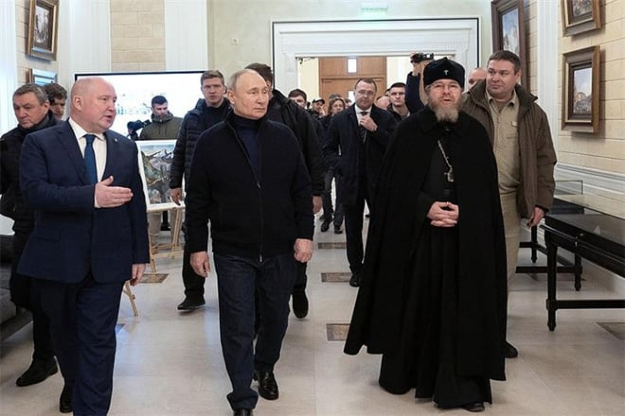রুশ নেতা শহরটি ঘুরে দেখেন এবং তাকে একটি গাড়ি চালাতে দেখা যায়। ক্রেমলিনের পক্ষ থেকে বলা হয়, তিনি পুননির্মিত একটি মিউজিক্যাল থিয়েটার পরিদর্শন করেন এবং পুনর্গঠন কাজের উপর একটি প্রতিবেদন উপস্থাপন করেন।