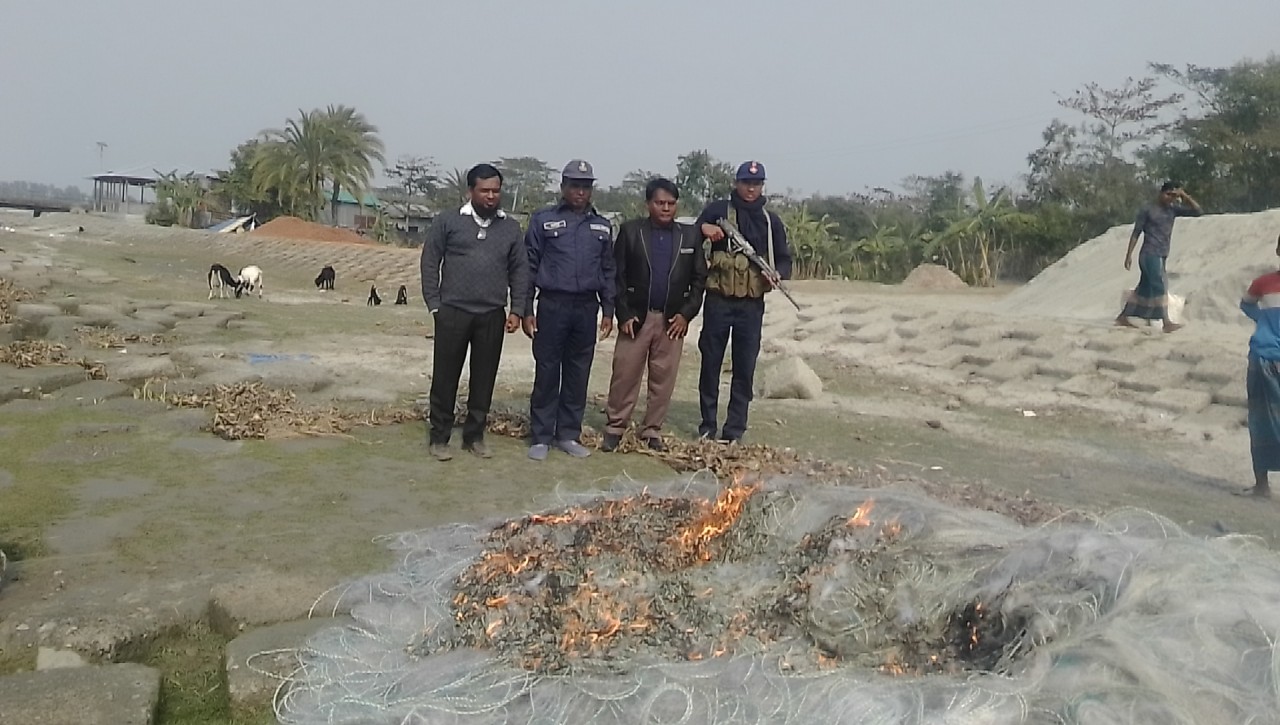 পরে জব্দকৃত ৫০ হাজার মিটার জাল উপজেলার হাজীর হাট লঞ্চ ঘাটে আগুন দিয়ে পোড়ানো হয়। এবং ১ মণ জাটকা ইলিশ অসহায়দের মাঝে বিতরন করা হয়।