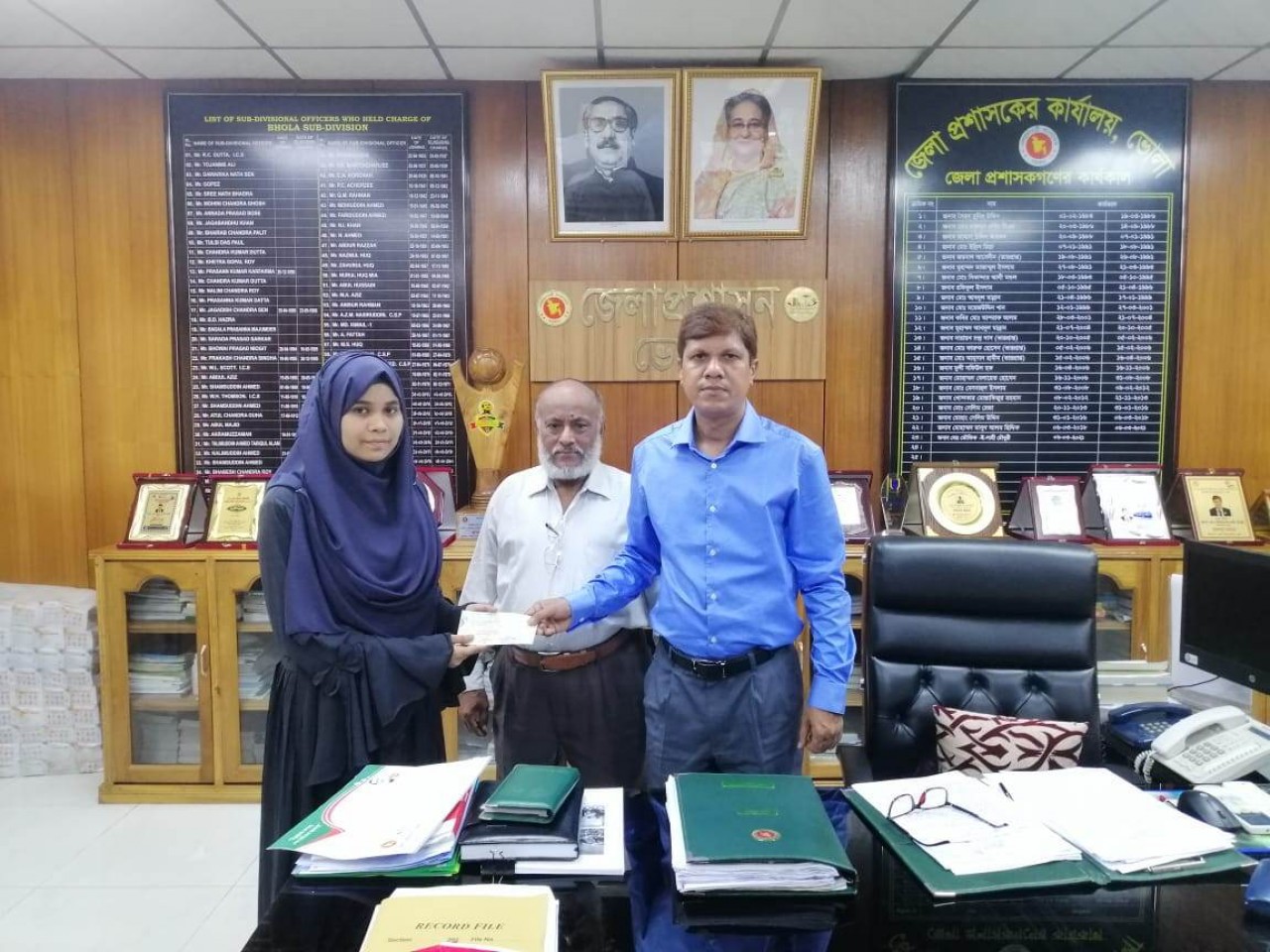 জানাযায়, মোসাম্মৎ খাদিজা আক্তার তুলি ২০২৩ সালে মেডিকেল ভর্তি পরীক্ষায় অংশগ্রহণ করে কুষ্টিয়া মেডিকেল কলেজে ভর্তি পরীক্ষায় উত্তীর্ণ হয়। যার মেধাতালিকায় ৩৪৮০, রোল নং-১৫০১২০৪। মেডিকেলে ভর্তির সুযোগ পেলেও পরিবারে আর্থিক অস্বচ্ছলতার কারণে ভর্তির দুশ্চিন্তায় পড়ে তুলি। এ অবস্থায় ভোলা জেলা প্রশাসকের বরাবরে আর্থিক সহযোগিতা চেয়ে আবেদন করেন। মেধাবী শিক্ষার্থী খাদিজা আক্তার তুলির আবেদন পেয়ে জেলা প্রশাসক তুলিকে মেডিকেলে ভর্তির জন্য সহযোগিতার হাত বাড়িয়ে দেন। সোমবার (২৭ মার্চ) দুপুরে জেলা প্রশাসক কার্যালয়ে খাদিজা আক্তার তুলিকে মেডিকেলে ভর্তির জন্য ভোলা মুসলিম এডুকেশন কমিটির তহবিল থেকে ২৫ হাজার টাকার একটি চেক ভোলা মুসলিম এডুকেশন কমিটির সভাপতি ও জেলা প্রশাসক মোঃ তৌফিক-ই-লাহী চৌধুরী তুলির হাতে তুলে দেন। জেলা প্রশাসকের এই মহতি উদ্যোগে মেধাবী শিক্ষার্থী খাদিজা আক্তার তুলির মেডিকেলে ভর্তি হওয়ার স্বপ্ন পূরণ হয়েছে। জেলা প্রশাসকের এই সহযোগিতা পেয়ে তুলি আনন্দের সাথে বলেন, ছোট বেলা থেকে ডাক্তার হওয়ার স্বপ্ন ছিলো। ডাক্তার হওয়ার জন্য আমি অনেক পড়ালেখা করেছি। মেডিকেল ভর্তি পরীক্ষায় অংশগ্রহণ করে ভর্তির সুযোগ পেয়েছি। কিন্তু মেডিকেলে ভর্তি হতে ও বই কিনতে প্রায় ২৫ হাজার টাকা প্রয়োজন হয়ে পড়ে। কিন্তু এই টাকা দেওয়ার সামর্থ আমার পরিবারের ছিলো না। আমি ভর্তি হওয়ার দুশ্চিন্তায় পড়ে যাই। উপায় না পেয়ে জেলা প্রশাসকের কাছে আর্থিক সহযোগিতা চেয়ে আবেদন করলে তিনি তার সহযোগিতার হাত বাড়িয়ে দেন। আমাকে ভর্তির জন্য ২৫ হাজার টাকার একটি চেক তুলে দিয়েছেন। ভর্তির হওয়ার যে দুশ্চিন্তা ছিলো সেই টেনশন থেকে মুক্তি পেয়েছি। আমি ডাক্তার হয়ে সাধারণ মানুষের সেবায় নিজেকে নিয়োজিত রাখবো।