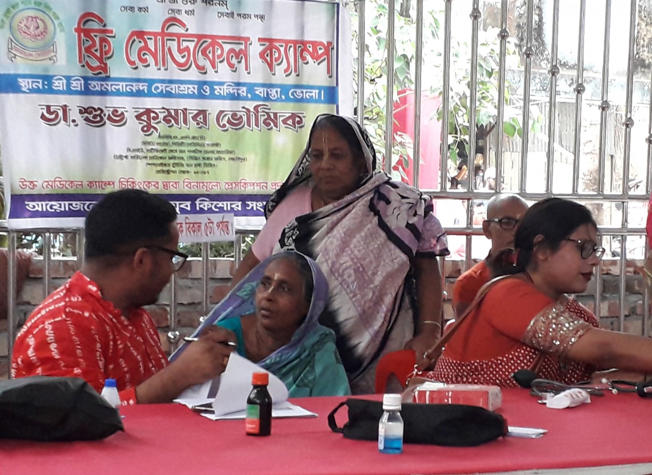 বাংলার কণ্ঠ প্রতিবেদক: ভোলায় অক্ষয় তৃতীয় উৎসবে বাপ্তার অমলানন্দ সেবা শ্রামে শুরু হয়েছে ফ্রি মেডিকেল ক্যাম্প। ডাক্তার শুভ কুমার ভৌমিক ৩ দিনের এই ক্যাম্পের দায়িত্ব পালন করেন। সোমবার পর্যন্ত এই ক্যাম্পে ২০০ জনকে সেবা প্রদান করা হয়। গুরু অবধূত যুবসেবা সংঘের আয়োজনে এই ক্যাম্পে একজন চিকিৎসকের পাশপাশি মেডিকেল কলেজের শিক্ষার্থী সোমা , সৌরভ গাঙ্গুলীসহ যুব সংঘের সদস্যরা সহযোগিতা করেন। ছিলেন এলাকার পল্লী চিকিৎসক তপন চক্রবর্তী । মন্দির কমিটির সাধারন সম্পাদক এ্যাডভোকেট শংকর গাঙ্গুলী জানান, এই সেবা শ্রমে ধর্মীয় আত্মাতিক সাধানার পাশাপাশি এখানে দরিদ্র মানুষদের সেবা প্রদান করা হয়। এর অংশ হিসেবে এবার অক্ষয় তৃতীয়া অনুষ্ঠানে ৩ দিনের মেডিকেল ক্যাম্প চালু করা হয়। সকাল থেকে অনুষ্ঠানে অংশ নেয়া ভক্তদের পাশাপাশি এলাকার সাধারন মানুষ এই সেবা নিতে ছুটে আসেন। সেবাশ্রমের সভাপতি সিনিয়র এ্যাডভোকেট রবীন্দ্র নাথ দে জানান, ২০০৬ সালে গুরু ও সাধক অশাকানন্দ ব্র²চারীর উদ্যোগে এই এলাকায় শ্রেবাশ্রম প্রতিষ্ঠা করা হয়। এখানে ধর্মীয় আধ্যাাত্মিক সাধানার পাশপাশি প্রতিবন্ধী মানুষদের বিশেষ সেবা প্রদান করা হয়। এলাকার কলেজ শিক্ষক পাপন চন্দ্র দে জানান, এবারের মেডিকেল ক্যাম্প স্থাপনে এলাকার মানুষ পেশার মাপা, ডায়াবেকটিস পরীক্ষা করা , চিকিৎসা পরামর্শ নেয়ারও সুযোগ পেয়েছেন। এই ধরা অব্যাহত রাখার দাবি জানান প্রাথমিক স্কুল শিক্ষক পলাশ চ্যাটার্জী , দোকানদার পলাশ দে । চিকিৎসা নিতে আসা ৬৫ বছরের আরতি মজুমদার জানান, বিনা টাকায় তিনি ডাক্তার দেখাতে পেরেছেন। এদিকে অক্ষয় তৃতীয়া অনুষ্ঠানের ৪ দিনে কয়েক হাজার ভক্ত অংশ নেন। এজন্য ছিল দুপুর ও রাতের খাবারের ব্যবস্থা।