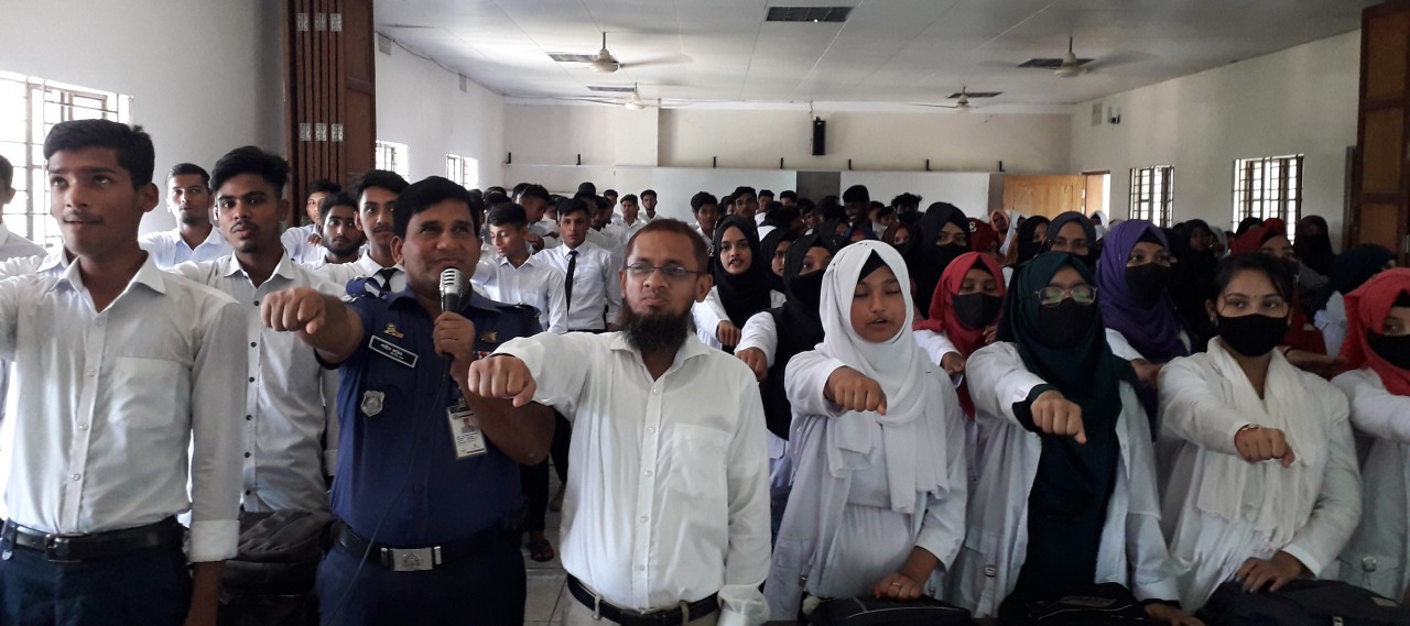 বাংলার কণ্ঠ প্রতিবেদক: ভোলায় মাদক . সন্ত্রাস ও বাল্য বিয়ে বন্ধে সক্রিয় থাকার শপথ নিয়েছে জেলার সেরা শিক্ষা প্রতিষ্ঠান বাংলাবাজার ফাতেমা খানম ডিগ্রি কলেজের শিক্ষার্থীরা। রোববার সকালে শিক্ষার্থীদের শপথ পড়ান জেলা সদরের মডেল থানার অফিসার ইনচার্জ শাহীন ফকির। এ সময় শিক্ষার্থীদের করণীয় বিষয় তুলে ধরে বক্তব্য রাখেন কলেজ অধ্যক্ষ মোঃ হারুন অর রশিদ. কলেজ উপাধ্যক্ষ সুশান্ত কুমার মন্ডল, প্রেসক্লাব সম্পাদক অমিতাভ অপু, সিনিয়র শিক্ষক সহকারী অধ্যাপক আবুল বাশার, সহকারী অধ্যাপক নাছিমা বেগম, সহকারী অধ্যাপক মোঃ আলমগীর হোসেন, শিক্ষক ধ্রæব হাওলাদার প্রমুখ। এ সময় মাদক, সন্ত্রাস , বাল্য বিয়ে বন্ধে শিক্ষার্থীরা ১০টি বিষয় না করার জন্য ঘোষনা দেয়। এগুলো হচ্ছে, কলেজে এন্ডয়েড ফোন ব্যবহার করবে না, অনুমতি ছাড়া কারো ছবি তুলবে না, কারো ছবি বা কারো সম্পর্কে খারাপ মন্তব্য সামাজিক যোগাযোগ মাধ্যমে পোস্ট বা লাইক কমেন্ট দিবে না, কারো অনুমতি ছাড়া ওই ব্যক্তির কম্পিউটার বা ফাইল ওপেন করবে না, সহপাঠী বা শিক্ষার্থীদের সঙ্গে খারাপ আচরণ করবে না, মাদক থেকে বিরত থাকবে, ইভটিজিংকে ঘৃনা করবে , বাল্য বিয়েকে না বলবে, গুজব বা অ-প্রচারে জড়িত থাকবে না। একই সঙ্গে কলেজে নিয়মিত উপস্থিত থেকে পাঠে মনোযোগ ও কলেজের সকল নিয়ম মেনে চলার অঙ্গীকার করেন শিক্ষার্থীরা। প্রথম দফায় উচ্চ মাধ্যমিক একাদশ শ্রেনির ৭শ শিক্ষার্থী এই শপথে অংশ নেয়। ওসি শাহীন ফকির তার কর্মস্থলের বাস্তব কয়েকটি ঘটনা তুলে ধরে ওই পথে গেলে কি হয় তা শিক্ষার্থীদের জানান। কলেজ অধ্যক্ষ জানান ওই কলেজের সাড়ে ৪ হাজার শিক্ষার্থীও জন্য শপথ গ্রহণ কার্যক্রম শুরু করেছেন। শিক্ষার্থীদের সু-নাগরিক ও সু-সন্তান হিসেবে গড়ে তুলে শিক্ষার পাশপাশি ১০টি ইস্যুতে খারাপ দিক পরিহারে শপথ গ্রহণ করানো হয়েছে। এই কলেজটি ১৯৯৭ সালে সাবেক শিল্প ও বাণিজ্যমন্ত্রী তোফায়েল আহমেদ তা’র মার নামে এই কলেজ প্রতিষ্ঠা করেন। তিনি ওই এলাকায় গড়ে তোলেন ফাতেমা খানম কমúেøক্স। এখানেই গড়ে তোলেন স্বাধীনতা জাদুঘর, বৃদ্ধাশ্রম, কারিগরি প্রশিক্ষণ কেন্দ্র , মা ও শিশু হাসপাতাল, আজাহার-ফাতেমা মেমোরিয়াল হাসপাতাল , মেডিকেল কলেজ ,ফাতেমা খানম ডিগ্রি কলেজ, ফাতেমা খানম মাধ্যমিক বিদ্যালয়, প্রাথেমা খানম সরকারি প্রাথমিক বিদ্যালয়, পল্লী বিদ্যুৎ সরবরাহ কেন্দ্র, যুব উন্নয়ন প্রশিক্ষণ কেন্দ্র । শিক্ষার্থীরা এই ক্যাম্পাসকে আদর্শ হিসেবে গড়ে তুলতে সচেষ্ট থাকার কথা জানায়।