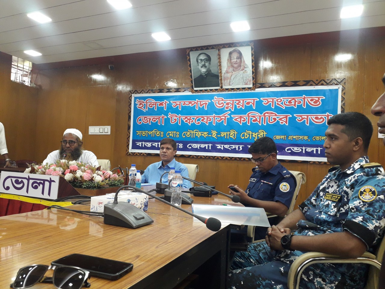 বাংলার কণ্ঠ প্রতিবেদক: ভোলাসহ উপকূলের গভীর সাগরে ইলিশ মাছ ও সামদ্রিক মাছের প্রজনন , বেড়ে ওঠা নিশ্চিত করতে ৬৫ দিনের মাছ ধরার উপর নিষেজ্ঞা শুরু হচ্ছে ২০ মে। সোমবার জেলা প্রশাসক কার্যালয়ে ইলিশ সম্পদ রক্ষা টাস্কফোর্স কমিটির সভায় এ তথ্য জানান জেলা প্রশাসক মোঃ তৌফিক ই লাহী চৌধুরী ও জেলা মৎস্য কর্মকর্তা মোল্লা এমদাদুল্লাহ । সাগরগামী জেলে ট্রলারে বরফ বিক্রি না করতে নির্দেশ দেয়া হয়েছে বরফ কল মালিকদের। নিষিদ্ধ এলাকায় কোস্টগার্ড ও নৌ-বাহিনীর টহল থাকবে বলে জানান অতিরিক্ত পুলিশ সুপার (সদর ) রিপন কুমার সরকার ও কোস্টগার্ অপারেশন অফিসার মেহেদী হাসান। উপস্থিত প্রেসক্লাব সম্পাদক অমিতাভ অপু’র অভিযোগের প্রেক্ষিতে চরফ্যাশনের শ্যামরাজ ঘাটকে বিশেষ নজরদারিতে রাখা হবে বলে জানান জেলা প্রশাসক। অভিযোগ ওঠে গেল বছর জেলার সকল সমুদ্রগামী জেলে ওই ঘাটে অবস্থান নিয়ে তার পর জোট বেধে নিষেধাজ্ঞা উপেক্ষা করে মাছ েধরতে যায়। এ সময় বিভিন্ন ইস্যুতে বক্তব্য রাখেন উপজেলা মৎস্য কর্মকর্তা মোঃ জামাল উদ্দিন, ইউপি চেয়ারম্যান আনোয়ার হোসেন ছোটন, , জেলা মৎস্যজীবী সমিতির সভাপতি নুরুল ইসলাম মুন্সি, আওয়ামী মৎস্যজীবী লীগের সভাপতি হাসান আলী, ক্ষুদ্রমৎস্যজীবী সতিমির সভাপতি এরশাদ হোসেন, জেলে ট্রলার সমিতির সভাপতি আব্দুল কামাল হোসেন।
