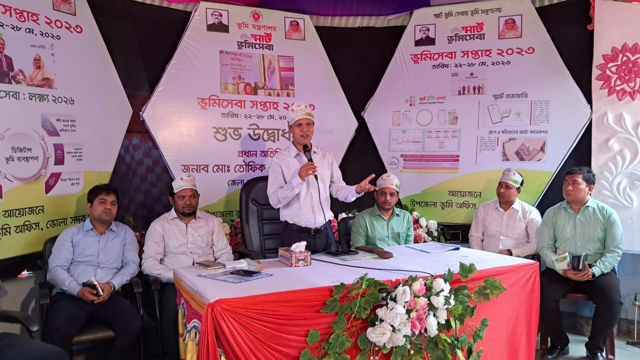 হাসনাইন আহমেদ মুন্না : জেলায় আজ ভূমিসেবা সপ্তাহ-২০২৩ উদ্বোধন করা হয়েছে। সোমবার সকাল ১১ টায় সদর উপজেলা ভূমি অফিস চত্তরে প্রধান অতিথি হিসাবে কার্যক্রমের উদ্বোধন করেন জেলা প্রশাসক মো: তৌফিক-ই-লাহী চৌধুরী। এর আগে জেলা প্রশাসক কার্যালয় চত্তর থেকে একটি বর্ণাঢ্য র্যালি বের করা হয়। সদর উপজেলা ভূমি অফিসের আয়োজনে আগামী ২৮ মে পর্যন্ত ভূমিসেবা সপ্তাহ চলবে। এসময় জেলা প্রশাসক বলেন, আমাদের দেশে যেসকল মামলা-মোকাদ্দমা হয়, তার মধ্যে ৮০ ভাগের বেশি হয় ভূমি সংক্রন্ত বিরোধকে কেন্দ্র করে। ভূমির বিষয়টি কিন্তু কোন সহজ ব্যাপার নয়। এটি নিরসনে সরকার কাজ করে যাচ্ছে। সরকার চাচ্ছে এই বিষয়টি সাধারণ মানুষের কাছে সহজভাবে উপাস্থাপন করতে। তাই স্মার্ট ভূমি সেবার মাধ্যমে মানুষ এখন নিজের জমির বিষয়টি নিজেই বুঝতে পারবে। এ ব্যাপারে সকলকে আরো বেশি সচেতন হওয়ার আহবান জানান জেলা প্রশাসক। অতিরিক্ত জেলা প্রশাসক তামিম আল ইয়ামীনের সভাপতিত্বে অনুষ্ঠানে আরো বক্তব্য রাখেন, সদর উপজেলা নির্বাহী কর্মকর্তা মো: তৌহিদুল ইসলাম, সদর উপজেলা সহকারী কমিশনার (ভূমি) মো: আলী সুজা, ভোলা প্রেসক্লাব সাধারণ সম্পাদক অমিতাভ অপু, পৌর ভূমি সহকারী কর্মকর্তা অতনু করঞ্জাই। একইসাথে জেলার অন্য ৬ উপজেলায় ভূমিসেবা সপ্তাহ পালন করা হচ্ছে।