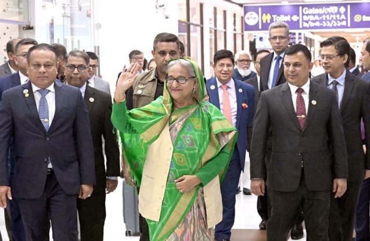 প্রধানমন্ত্রী ও তাঁর সফরসঙ্গীদের বহনকারী বিমান বাংলাদেশ এয়ারলাইন্সের একটি ফ্লাইট ভোর ০৫:৫৮ টায় হযরত শাহজালাল আন্তর্জাতিক বিমানবন্দরে অবতরণ করে।