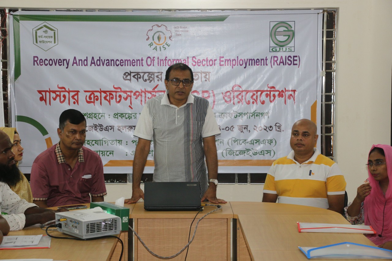 বাংলার কণ্ঠ প্রতিবেদক : ভোলায় রেইজ প্রকল্পের আওতায় মাস্টার ক্রাফটস পার্সনদের দুই দিন ব্যাপী ওরিয়েন্টেশন শুরু হয়েছে।রবিবার সকালে গ্রামীন জন উন্নয়ন সংস্থার হলরুমে ওরিয়েন্টেশনের উদ্ধোধন করেন গ্রামীন জন উন্নয়ন সংস্থার নির্বাহী পরিচালক জাকির হোসেন মহিন। পল্লীকর্ম-সহায়ক ফাউন্ডেশনের রেইজ প্রকল্পের আওতায় গ্রামীন জন উন্নয়ন সংস্থা ওরিয়েন্টেশনের আয়োজন করে।