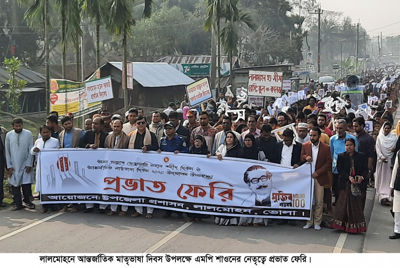 জসিম জনি,লালমোহন : মহান একুশে ফেব্রুয়ারী আন্তর্জাতিক মাতৃভাষা দিবস উপলক্ষ্যে লালমোহনে শহীদ মিনারে ভাষা শহীদদের প্রতি শ্রদ্ধাঞ্জলি জ্ঞাপন, প্রভাত ফেরি, চিত্রাংকন প্রতিযোগিতা ও আলোচনা সভা অনুষ্ঠিত হয়েছে। সভায় ভোলা-৩ আসনের এমপি নূরুন্নবী চৌধুরী শাওন বলেছেন, একুশের চেতনায় উদ্বুদ্ধ হয়ে বঙ্গবন্ধুর স্বপ্নের সোনার বাংলা গড়তে প্রধানমন্ত্রী শেখ হাসিনা কাজ করছেন। তাই বাংলাদেশ আজ বিশ্বের বুকে মাথা উচু করে দাঁড়াতে শিখেছে। বাংলা ভাষার জন্য যে আন্দোলন ও রক্ত ঝড়েছে তা আজ সারা বিশ্বের সকল নাগরিকের সত্য ও ন্যায়ের অধিকার প্রতিষ্ঠার প্রেরণার উৎস আন্তর্জাতিক মাতৃভাষা দিবস। অসম্প্রদায়িক চেতনায় বাঙ্গালিকে সামনের দিকে চলার পথে প্রেরণা জোগায় একুশ।