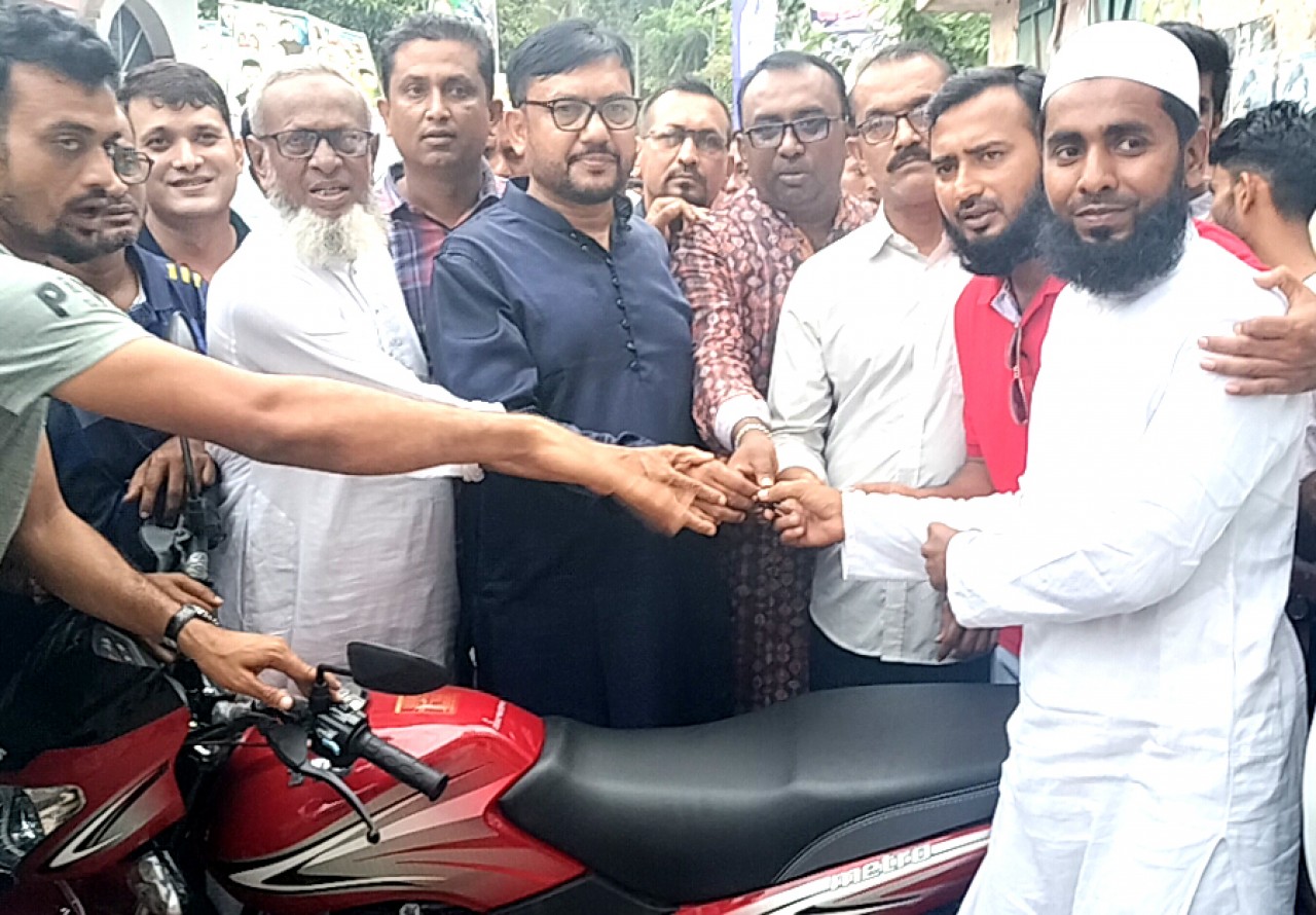 লালমোহন প্রতিনিধি : ১০ টাকা দিয়ে একটি লাকি কুপন কিনেন যুবক মো. রুবেল। ওই লাকি কুপনের ড্রতে তিনি পেয়েছেন ১ লক্ষ ৩০ হাজার টাকা দামের টিভিএস মেট্রো মডেলের মোটরসাইকেল। সোমবার বিকালে যুবক রুবেলের হাতে লালমোহন পৌরসভার কলেজপাড়া এলাকায় মোটরসাইকেলের চাবি তুলে দেন ভোলা-৩ আসনের সংসদ সদস্য নূরুন্নবী চৌধুরী শাওন। মোটরসাইকেল জয়ী রুবেল ভোলার লালমোহন উপজেলার লালমোহন ইউনিয়নের ১ নম্বর ওয়ার্ডের শনিবাড়ির বাসিন্দা।