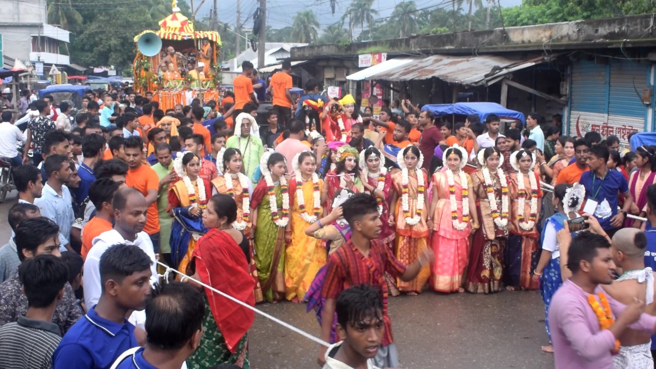 পরে বিকালে স্ব স্ব মন্দির থেকে বর্ণাঢ্য বিশাল ২টি রথে জগন্নাথ দেব, সুভদ্রা ও বলরামের প্রতিকৃতিসহ শোভাযাত্রা বের করা হয়। রথের রশি ধরে টেনে নিয়ে চলেন ভক্তরা। আর রথে থাকা পূজারিরা বিভিন্ন ধরনের ফল ছুড়ে ভক্তদের উদ্দেশ্য করে।ভক্তরা সেই ফলগুলো প্রসাদ স্বরূপ গ্রহন করে।ভক্তদের বিশ্বাস রশি টানলে তাদের আর পুনর্জন্ম হবে না।