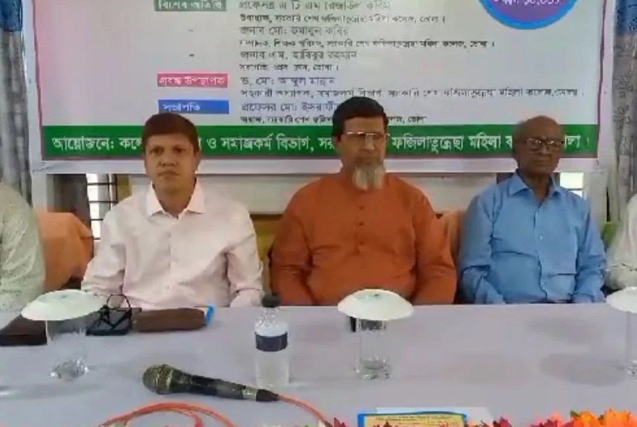 ভোলা সরকারি শেখ ফজিলাতুন্নেছা মহিলা কলেজ এবং ওই কলেজের সমাজকর্ম বিভাগের যৌথ আয়োজনে অনুষ্ঠিত সেমিনারে সভাপতিত্ব করেন অধ্যক্ষ মো. ইসরাফিল। এসময় অনুষ্ঠানে গেষ্ট অব অনার হিসেবে বক্তব্য রাখেন, ভোলা সরকারি কলেজের অধ্যক্ষ প্রফেসর আবদুল গফুর, বিশেষ অতিথির বক্তব্য রাখেন ভোলা প্রেসক্লাবের সভাপতি এম হাবিবুর রহমান,কলেজ শিক্ষক মোঃ হুমায়ুন কবির প্রমুখ।