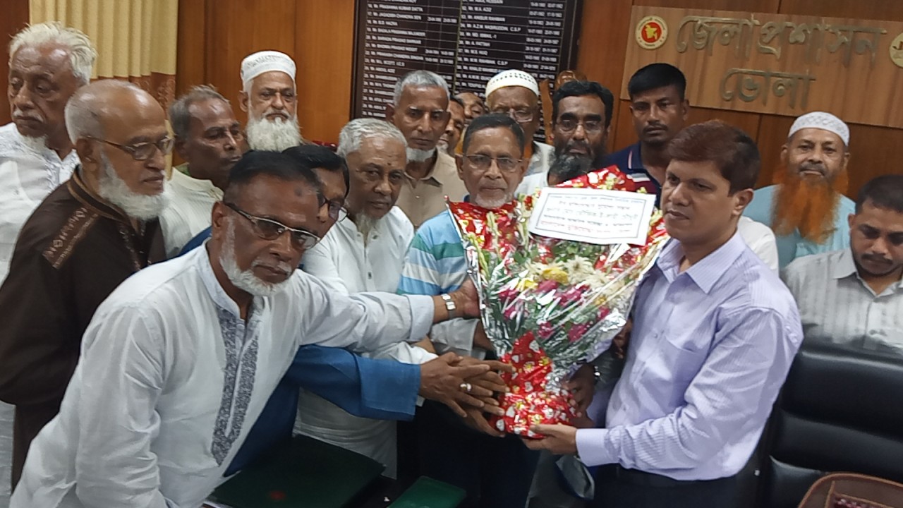 ভোলা জেলা মুক্তিযোদ্ধা সংসদ কমান্ডার দোস্ত মাহমুদ ও সদর উপজেলা কমান্ডার মোঃ অহিদুর রহমানের নেতৃত্বে বিভিন্ন এলাকার মুক্তিযোদ্ধাদের উপস্থিতিতে জেলা প্রশাসক তৌফিক -ই - লাহী চৌধুরীর হাতে শুভেচ্ছা উপহার ফুলের তোড়া তুলে দেয়া হয়। এসময় জেলা প্রশাসকের সাথে সকলে কুশল বিনিময় করেন।