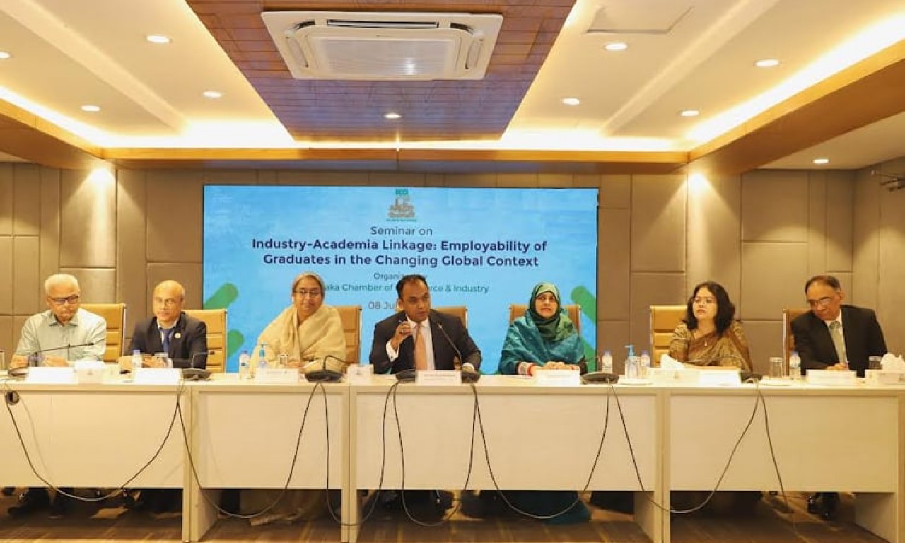 আজ শনিবার ঢাকা চেম্বার অব কমার্স অ্যান্ড ইন্ডাস্ট্রি (ডিসিসিআই) আয়োজিত ‘শিল্প-শিক্ষা খাতের সমন্বয় : পরিবর্তশীল বৈশি^ক পরিস্থিতিতে শিক্ষার্থীদের কর্মসংস্থানের সুযোগ সৃষ্টি’ শীর্ষক সেমিনারে প্রধান অতিথির বক্তব্যে তিনি একথা বলেন।