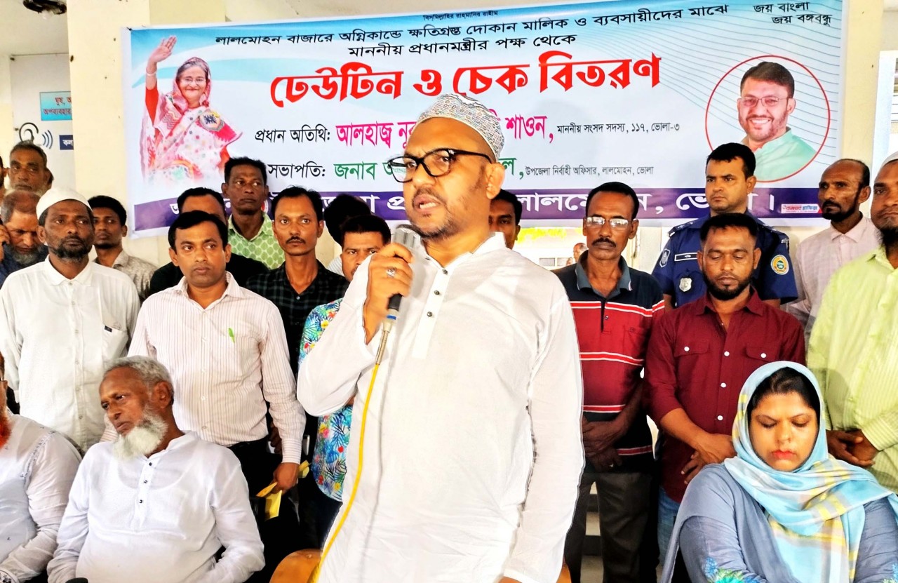 লালমোহন প্রতিনিধি : ভোলা-৩ আসনের সংসদ সদস্য (এমপি) নূরুন্নবী চৌধুরী শাওন বলেছেন, প্রধানমন্ত্রী শেখ হাসিনার সরকার দেশের মানুষের কল্যাণে কাজ করছে। যেকোনো দুর্যোগে দেশের মানুষের পাশে থাকছে সরকার। দেশের উন্নয়ন-অগ্রগতি প্রধানমন্ত্রী শেখ হাসিনার হাত ধরে বহুদূর এগিয়ে গেছে। আওয়ামী লীগ সরকার ক্ষমতায় থাকলে দেশের উন্নয়ন-অগ্রগতির এ ধারা অব্যাহত থাকবে। এজন্য দেশ ও জনগণের স্বার্থে আওয়ামী লীগের বিকল্প নেই। সোমবার দুপুরে ভোলার লালমোহন উপজেলা পরিষদ প্রাঙ্গনে উপজেলা প্রশাসনের আয়োজনে অগ্নিকাÐে ক্ষতিগ্রস্ত ২৭ জন দোকান মালিক ও ব্যবসায়ীকে ঢেউ টিন এবং চেক প্রদান অনুষ্ঠানে প্রধান অতিথির বক্তব্যে তিনি এসব কথা বলেন। লালমোহন উপজেলা নির্বাহী কর্মকর্তা (ইউএনও) অনামিকা নজরুলের সভাপতিত্বে এ সময় উপজেলা আওয়ামী লীগের সাধারণ সম্পাদক ফখরুল আলম হাওলাদার, পৌরসভা আওয়ামী লীগের আহবায়ক শফিকুল ইসলাম বাদল, প্রকল্প বাস্তবায়ন কর্মকর্তা সোহাগ ঘোষ, মাধ্যমিক শিক্ষা কর্মকর্তা রফিকুল ইসলামসহ আরো অনেকে উপস্থিত ছিলেন। অন্যদিকে, সোমবার আরো দুইটি পৃথক অনুষ্ঠানের মাধ্যমে আইসিটি ইন এডুকেশন লিটারেসি, ট্রাবলস্যুটিং অ্যান্ড মেইনটেন্যান্স বিষয়ক প্রশিক্ষণের উদ্বোধনসহ ২৫১ শিক্ষার্থীর মাঝে প্রধানমন্ত্রীর উপহারের ট্যাব বিতরণ করেন এমপি নূরুন্নবী চৌধুরী শাওন।