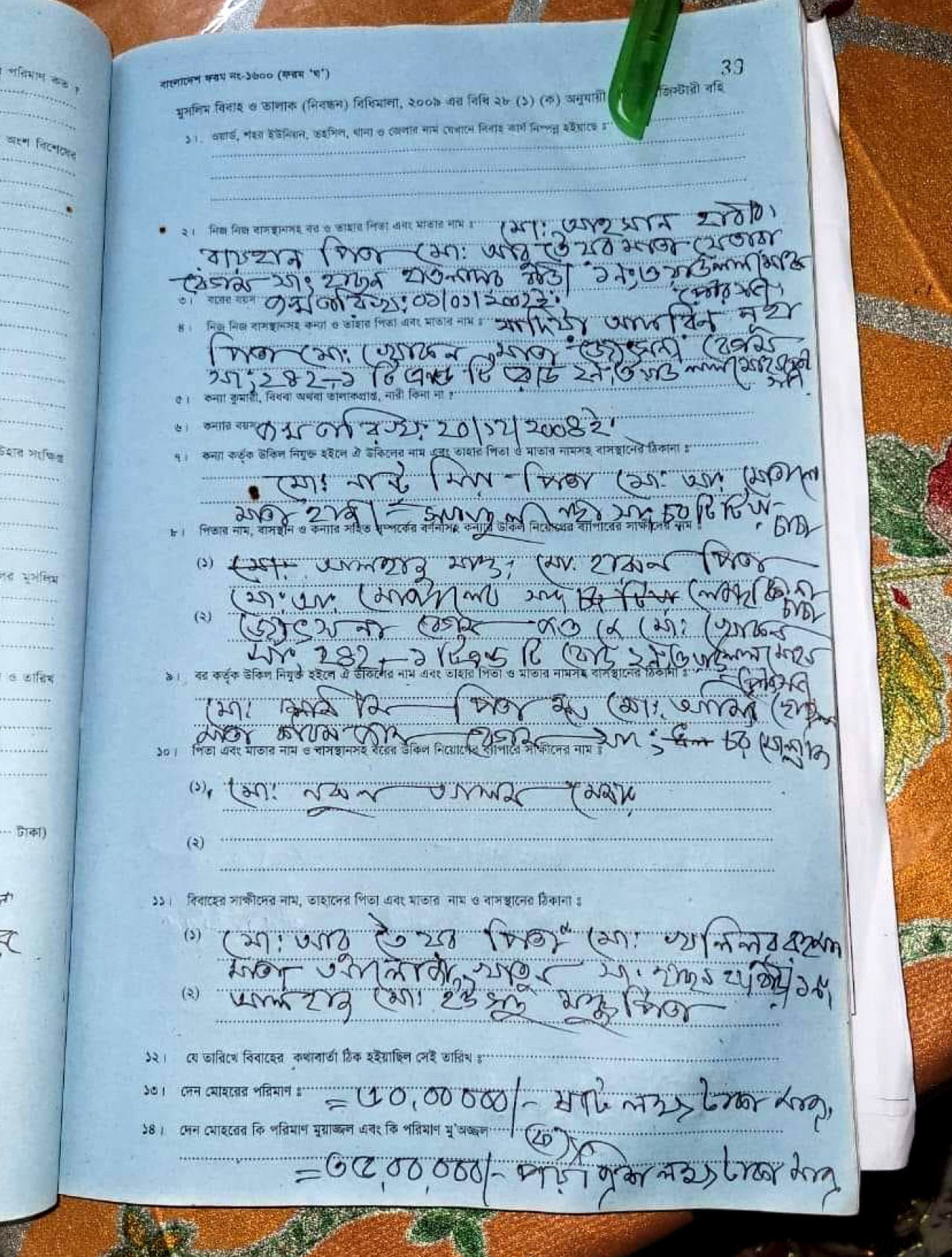 জানা যায়, লালমোহন সরকারি মডেল মাধ্যমিক বিদ্যালয়ের সহকারী প্রধান শিক্ষক আবু তৈয়বের ছেলে আহসান হাবিব রায়হানের সঙ্গে একই বিদ্যালয়ের এক সহকারী শিক্ষিকার মেয়ের বিয়ে হয়। বিয়ের ওই কাবিনে কনের বয়স ১৮ বছর ৬মাস দেখালেও তার পঞ্চম ও অষ্টম শ্রেণির সনদ অনুযায়ী বয়স ১৬ বছর ৬মাস। এরআগে ছেলে-মেয়ে পালিয়ে গিয়ে গত ২মার্চ ১ লাখ টাকা দেনমোহরে পাবলিক নোটারীর মাধ্যমে নিজেরাই বিয়ে করে। পরে গত ৫জুলাই বর-কনের পরিবারের সমঝোতায় পূণরায় ৬০ লাখ টাকা দেনমোহরে কাবিন করা হয়। যেখানে দেনমোহরের ৩৫ লাখ টাকা পরিশোধ দেখানো হয়েছে।