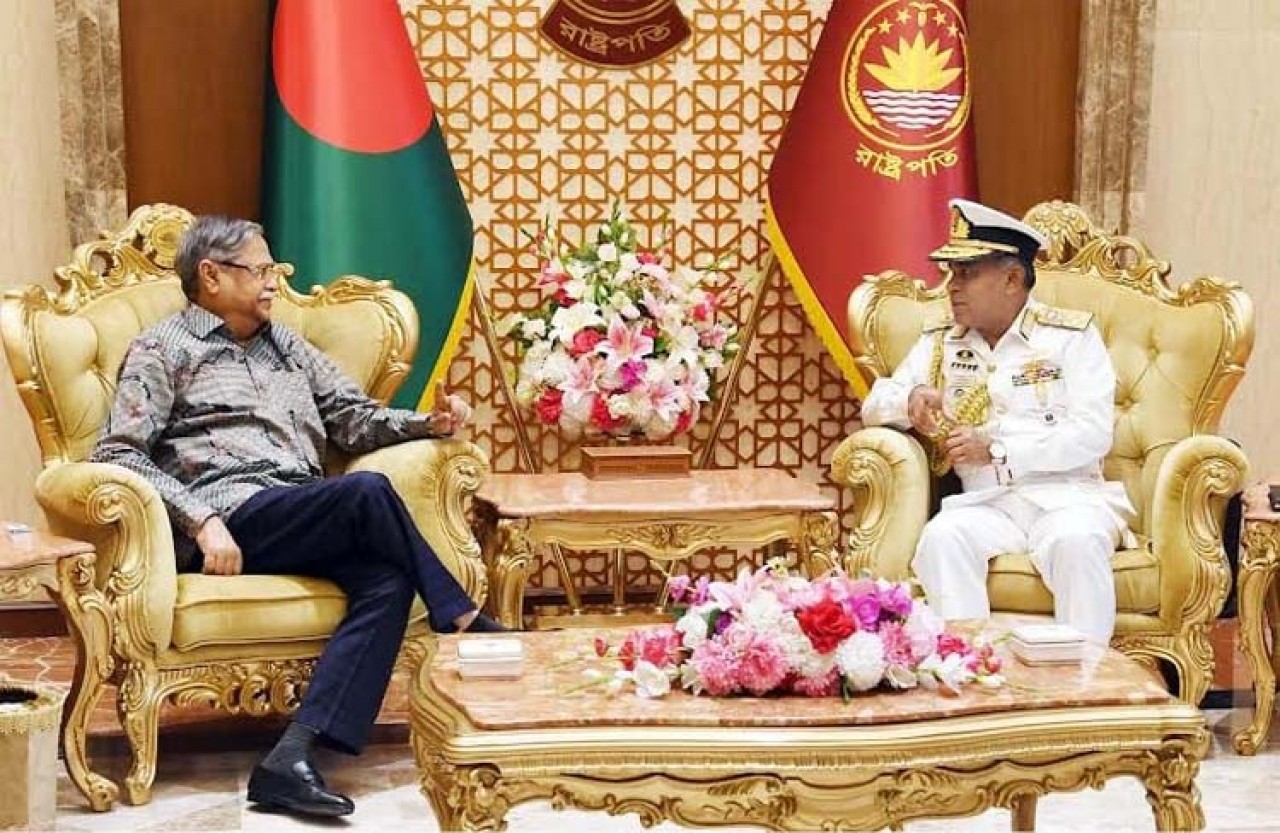 রাষ্ট্রপতি মোঃ সাহাবুদ্দিনের সঙ্গে আজ দুপুরে বঙ্গভবনে সৌজন্য সাক্ষাৎ করেছেন বিদায়ী নৌবাহিনী প্রধান এডমিরাল এম শাহীন ইকবাল।
