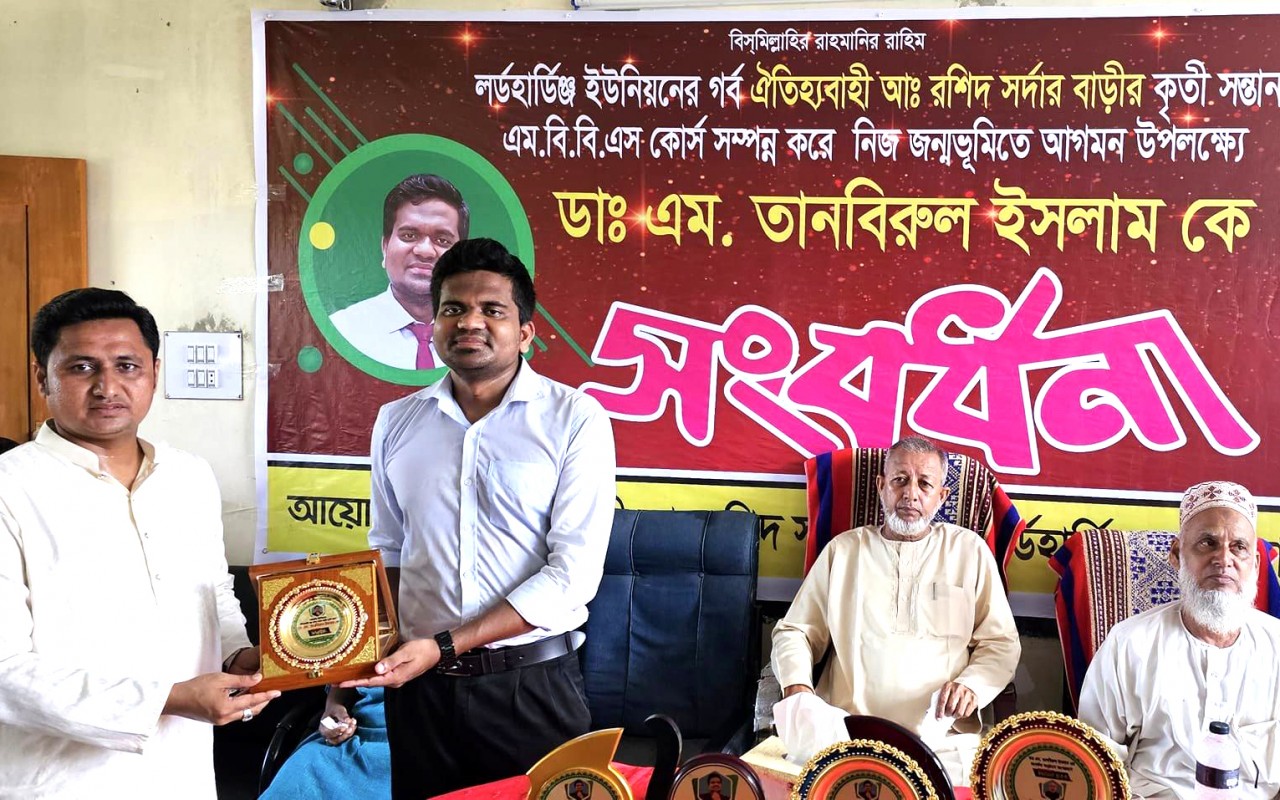 লর্ডহার্ডিঞ্জ ফাজিল মাদরাসার অধ্যক্ষ মাওলানা মোহাম্মদ ইউসুফের সভাপতিত্বে সংবর্ধনা অনুষ্ঠানে প্রধান অতিথি হিসেবে উপস্থিত ছিলেন- উপজেলা আওয়ামী লীগের সহ-সভাপতি এবং লর্ডহার্ডিঞ্জ ইউপি চেয়ারম্যান মো. আবুল কাশেম মিয়া।