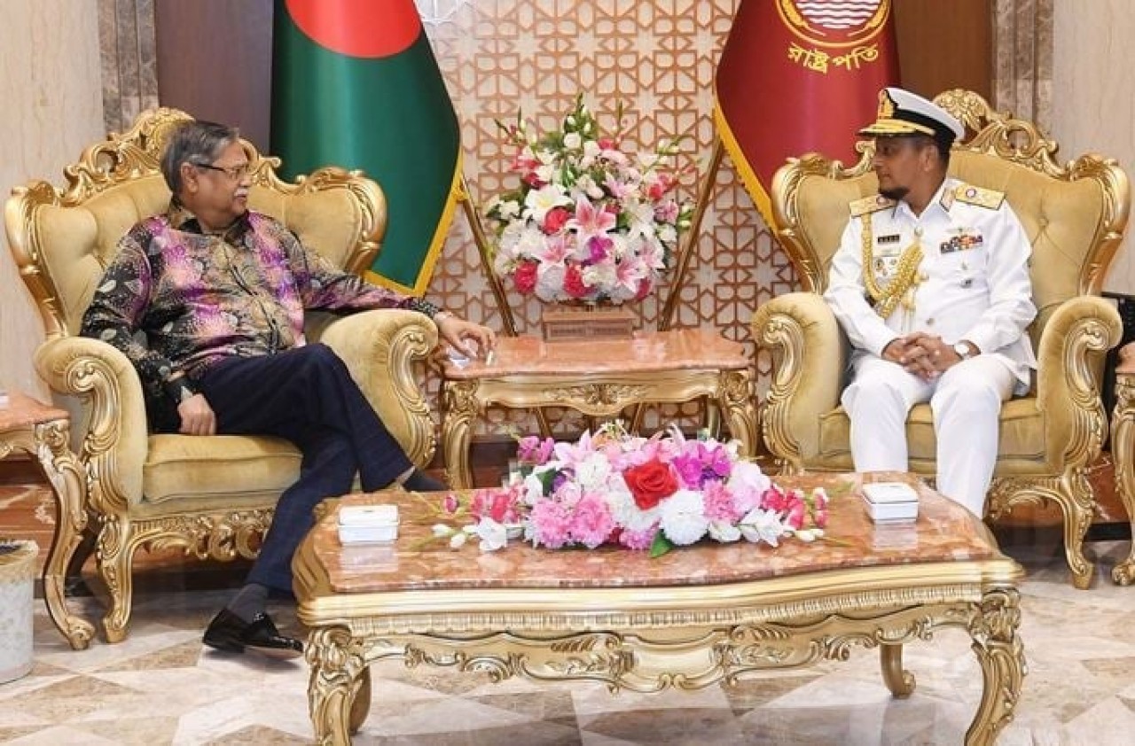 রাষ্ট্রপতি মোঃ সাহাবুদ্দিন এর সাথে আজ বঙ্গভবনে নবনিযুক্ত নৌবাহিনী প্রধান ভাইস এডমিরাল এম নাজমুল হাসান সৌজন্য সাক্ষাৎ করেন।