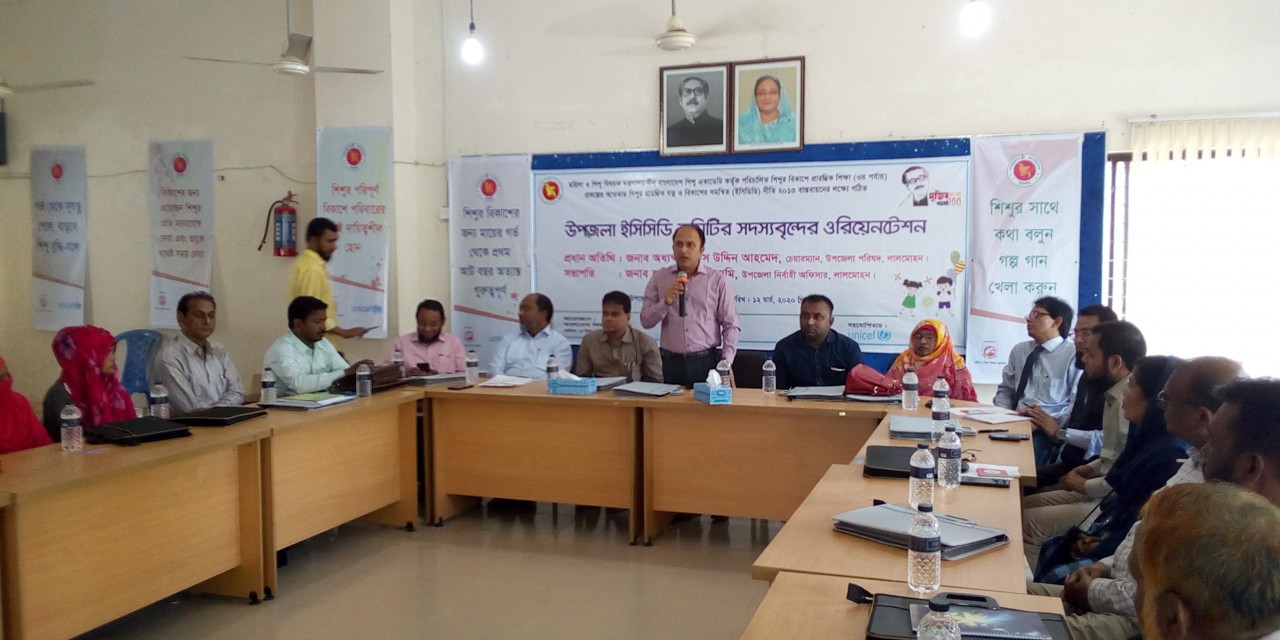 ওরিয়েনটেশন সভার শুভ উদ্বোধন করেন লালমোহন উপজেলা পরিষদের ভাইস চেয়ারম্যান আবুল হাছান রিমন। এসময় লালমোহন উপজেলা নির্বাহী অফিসার হাবিবুল হাসান রুমির সভাপতিত্বে উপস্থিত ছিলেন, সরকারি শাহবাজপুর কলেজ এর অধ্যক্ষ প্রফেসর ড. মোহাম্মদ শফিকুল ইসলাম,করিমুন্নেছা হাফিজ মহিলা ডিগ্রি মাদরাসার অধ্যক্ষ আববাছ উদ্দিন, লালমোহন উপজেলা পরিষদের মহিলা ভাইস চেয়ারম্যান মাসুমা বেগম।অনুষ্ঠানের শুরুতেই শুভেচ্ছা বক্তব্য রাখেন জেলা শিশু বিষয়ক কর্মকর্তা আখতার হোসেন। এ সময় বক্তারা বলেন, শিশুর বিকাশের জন্য মায়ের গর্ভ থেকে প্রথম আট বছর অত্যন্ত গুরুত্বপূর্ন এ সময় তাদের মেধা বিকাশ হয়। শিশুরা আগামী দিনের ভবিষ্যত তাদের সঠিক ভাবে গড়ে না তুলতে পারলে দেশের ভবিষ্যত অন্ধকার। সরকার উদ্দ্যেগ নিয়েছে। এই উদ্দ্যেগ বাস্তবায়ন করতে হবে আমাদেরই। আমাদের সকলের উচিত শিশুদের যতেœর সাহায্যে গড়ে তোলা। চলুন নিজ পরিবার থেকেই আমরা শুরু করি এ কার্যক্রম। পরে দিন ব্যাপী উপজেলা ইসিসিডি কমিটির সদস্যদের নিয়ে ওরিয়েনটেশন সভা অনুষ্ঠিত হয়। যেখানে দিনব্যাপী প্রশিক্ষন পরিচালনা করেন জেলা সমাজসেবা অধিদপ্তরের উপ-পরিচালক মো: নজরুল ইসলাম ও জেলা শিশু বিষয়ক কর্মকর্তা আখতার হোসেন।