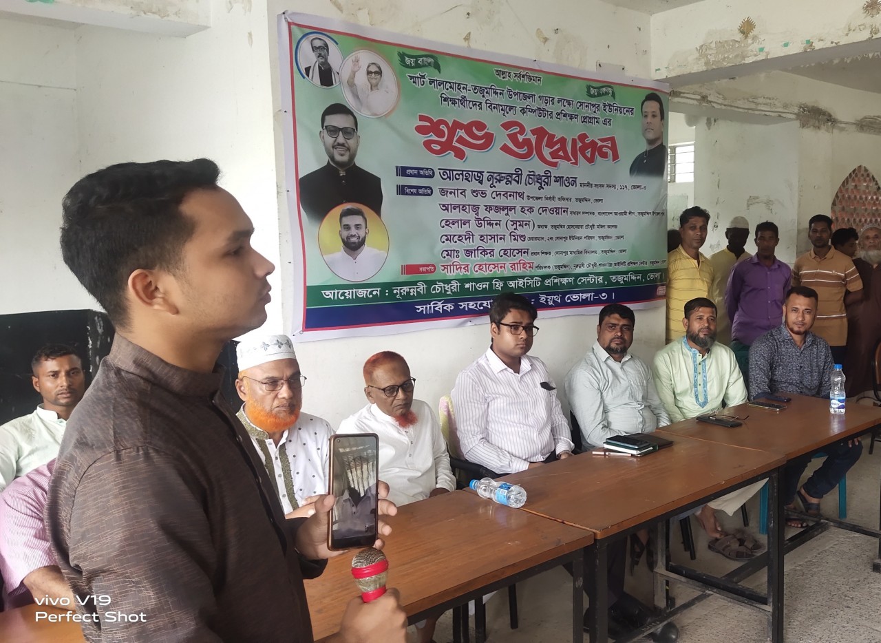 মঙ্গলবার ০১ আগস্ট সকাল ১১টায় সোনাপুর মাধ্যমিক বিদ্যালয়ের হলরুমে নূরুন্নবী চৌধুরী শাওন ফ্রি আইসিটি প্রশিক্ষণ সেন্টার এর আয়োজনে ও ইয়ুথ ভোলা ০৩ এর সার্বিক সহযোগিতায় মাসিক কোর্সে সম্পূর্ণ বিনামূল্যে কম্পিউটার প্রশিক্ষণ ও সৃজনশীল অগ্রগামী উন্নয়ন সংসদ এর আয়োজনে দিনব্যাপী বিনামূল্যে দাঁতের চিকিৎসা সেবা প্রদান অনুষ্ঠানে নূরুন্নবী চৌধুরী শাওন ফ্রি আইসিটি প্রশিক্ষণ সেন্টার তজুমদ্দিন শাখার পরিচালক সাদির হোসেন রাহিম এর সভাপতিত্বে প্রধান অতিথি হিসেবে বক্তব্য রাখেন ভোলা ০৩ আসনের সংসদ সদস্য আলহাজ্ব নূরুন্নবী চৌধুরী শাওন।