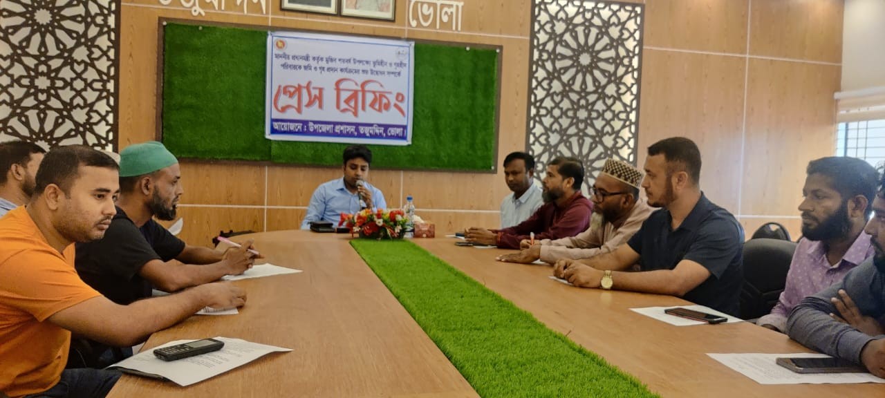 তজুমদ্দিন প্রতিনিধি : ভোলা তজুমদ্দিনে মুজিববর্ষ উপলক্ষে ৪র্থ পর্যায়ে (২য় ধাপে) উপজেলায় আরও ১৩৭ ভূমিহীন পাচ্ছেন জমি ও নতুন ঘর। ৮ আগষ্ট মঙ্গলবার সকাল ১০টায় তজুমদ্দিন উপজেলা প্রশাসকের সম্মেলন কক্ষে এ বিষয়ে প্রিন্ট ও ইলেকট্রনিক মিডিয়ার সাংবাদিকদের সাথে প্রেস ব্রিফিংয়ের আয়োজন করা হয়।