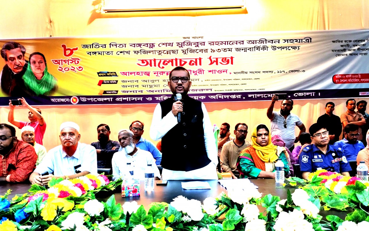 মঙ্গলবার সকালে ভোলার লালমোহন উপজেলা পরিষদ অডিটোরিয়ামে উপজেলা প্রশাসন ও মহিলা বিষয়ক অধিদপ্তরের আয়োজনে বঙ্গমাতা শেখ ফজিলাতুন নেছা মুজিবের ৯৩তম জন্মবার্ষিকীর আলোচনা সভায় প্রধান অতিথির বক্তব্যে তিনি এসব কথা বলেন।