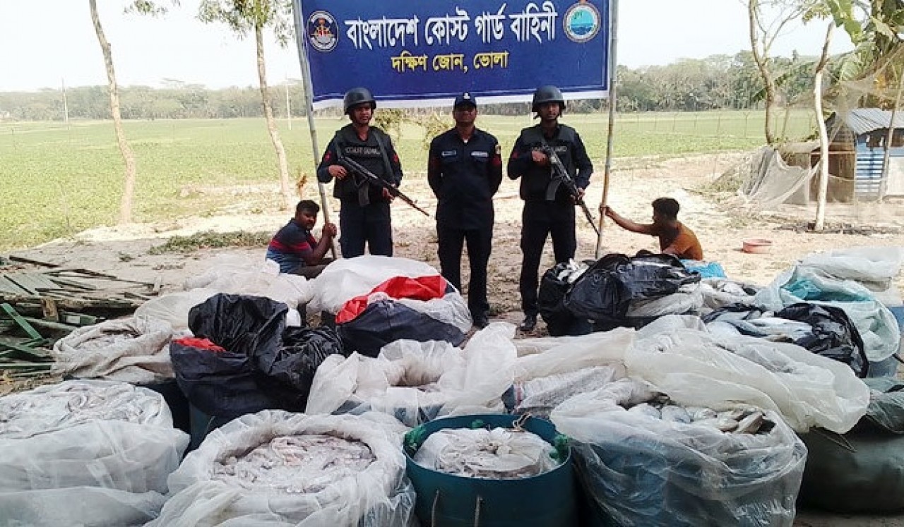 বাংলার কণ্ঠ প্রতিবেদক:: ভোলার মেঘনা নদীতে কোস্টগার্ড সদস্যরা অভিযান চালিয়ে যাত্রীবাহী লঞ্চ থেকে ৭০ মণ জাটকা ইলিশ জব্দ করেছে । সোমবার বিকেলে কোস্টগার্ড দক্ষিণ জোনের অপারেশন অফিসার লে. মেহেদী হাসান সাংবাদিকদের জানান, গোপন সংবাদের ভিত্তিতে সকালে উলানিয়া থেকে বরিশালগামী যাত্রীবাহী আলাপসার লঞ্চটিকে মেঘনা নদীতে তল্লাশি করা হয়। এ সময় লঞ্চটিতে ৭০ মণ জাটকা ইলিশ পাওয়া যায়। তবে কাউকে আটক করা সম্ভব হয়নি। জব্দকৃত ইলিশের আনুমানিক মূল্য ১০ লাখ টাকা । পরে জব্দকৃত মাছ মৎস্য বিভাগের উপস্থিতিতে ভোলার বিভিন্ন এতিমখানা ও দুস্থদের মাঝে বিতরণ করা হয়।