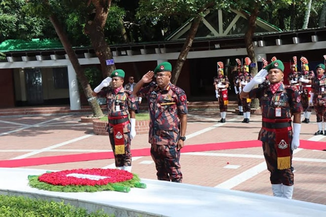 এ সময় বিজিবি’র একটি সুসজ্জিত দল গার্ড অব অনার প্রদান করে। এরপর ফাতেহা পাঠ ও বিশেষ মোনাজাত করে জাতির পিতা বঙ্গবন্ধু শেখ মুজিবুর রহমান এবং ৭৫ এর ১৫ আগস্ট তাঁর পরিবারের শহীদদের রূহের মাগফিরাত কামনা এবং প্রধানমন্ত্রী শেখ হাসিনা ও তাঁর পরিবারের সদস্যদের দীর্ঘায়ু ও কল্যাণ কামনা করে দোয়া করা হয়। পরে মহাপরিচালক বঙ্গবন্ধু ভবনে পরিদর্শন বইয়ে মন্তব্য লিখে স্বাক্ষর করেন।