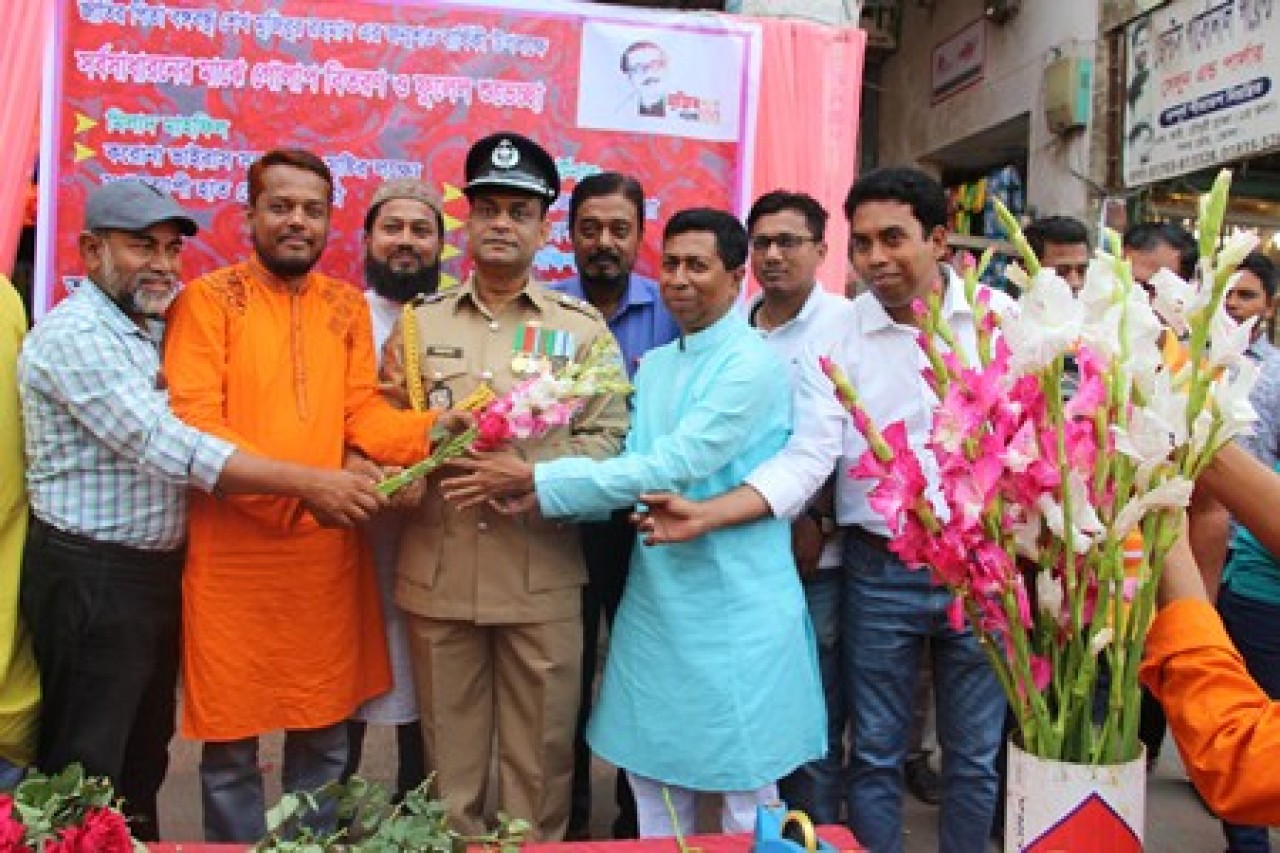 মুহাম্মদ মুসলিম : ভোলায় হাত ধোয়া ও হাজার মানুষের মধ্যে গোলাপ ফুল বিতরণের মধ্য দিয়ে সোমবার বঙ্গবন্ধুর জন্ম শতবর্ষ উদযাপন করেছে জেলা যুগান্তর স্বজন সমাবেশ ও বিয়ে বাজার ( বিবা)নামের সংগঠন। আয়োজনের মিডিয়া পার্টনার দৈনিক বাংলার কন্ঠ । এ সময় হাত ধোয়া ও ফুল গ্রহণ করা অনুষ্ঠানে অংশ নেয়ার পাশপাশি বক্তব্য রাখেন জেলা ও দায়রা জজ ড. এবিএম ম্হাামুদুল হক, পুলিশ সুপার সরকার মোহাম্মদ কায়সার, অধ্যক্ষ সাফিয়া খাতুন, প্রেসক্লাব সম্পাদক যুগান্তর জেলা প্রতিনিধি অমিতাভ অপু, স্বজন সমাবেশের সাবেক সম্পাদক বিয়ে বাজার পরিচালক মোঃ মনিরুল ইসলাম, স্বজন সমাবেশের সাবেক সম্পাদক একাত্তর টিভি প্রতিনিধি মোঃ কামরুল ইসলাম, ভোলা জেলা মুক্তিযোদ্ধা সংসদ সন্তান কমান্ডের আহŸায়ক হামিদুর রহমান হাসিব , সাংবাদিক মেজবাহ উদ্দিন শিপু, সাংবাদিক ফয়েজ আহম্মেদ, ছোটন সাহা, সাংবাদিক অচিন্ত্য মজুমদার, শিশু সংগঠক যুব রেডক্রিসেন্ট দল নেতা আদিল হোসেন তপু, ক্যাব সম্পাদক মোঃ সোলায়মান, ভোলার বাণীর সম্পাদক মাকসুদুর রহমান , কলেজ শিক্ষক আজিজুল ইসলাম প্রমুখ।
