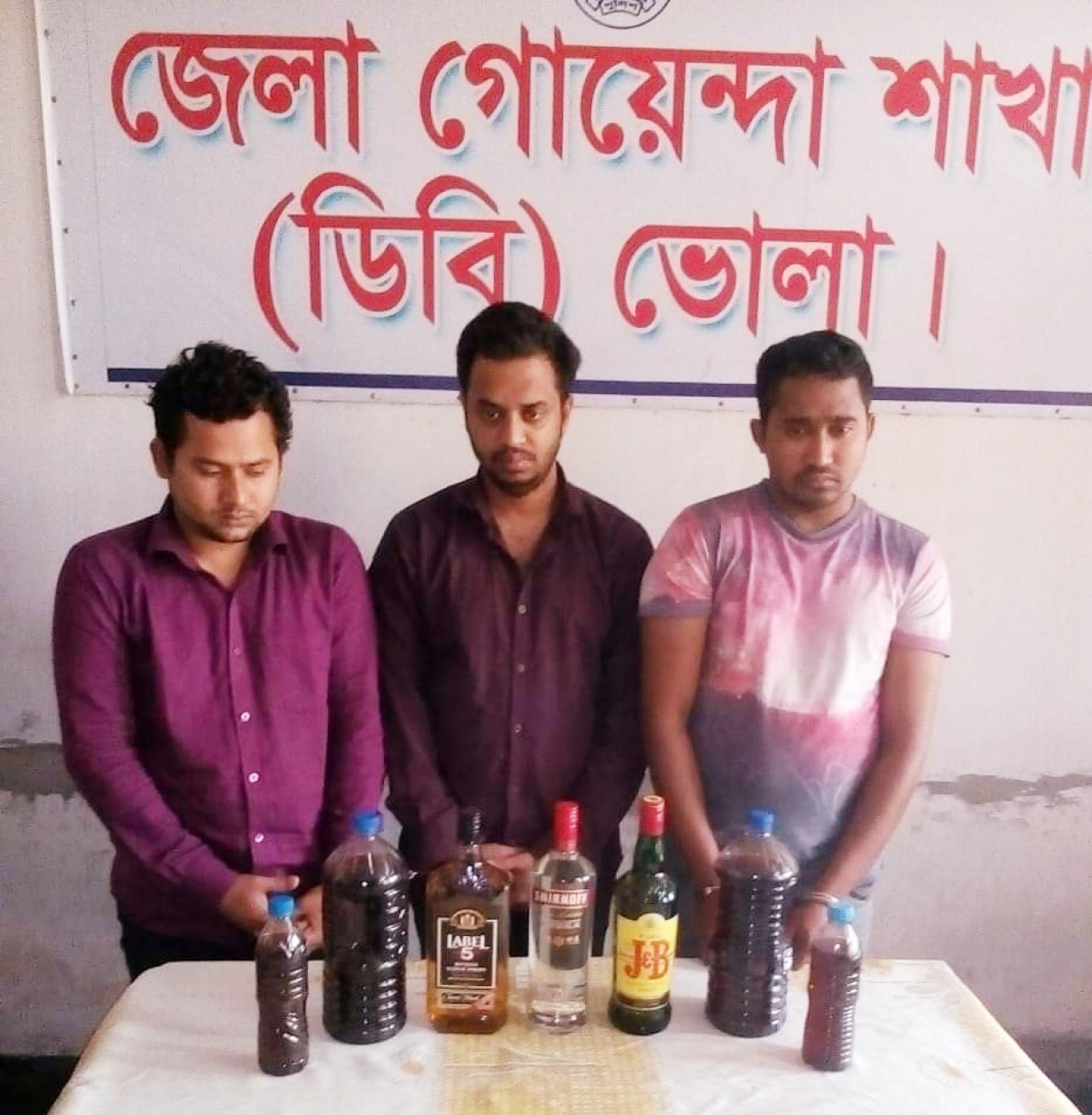 আকতারল ইসলাম আকাশ : ভোলা সদর থানার সংলগ্ন পৌর ০৩নং ওয়ার্ড ভোলা ক্লাবে অভিযান চালিয়ে বিদেশি মদসহ ৩ মাদকসেবককে আটক করেন জেলা গোয়েন্দা পুলিশ ডিবি।