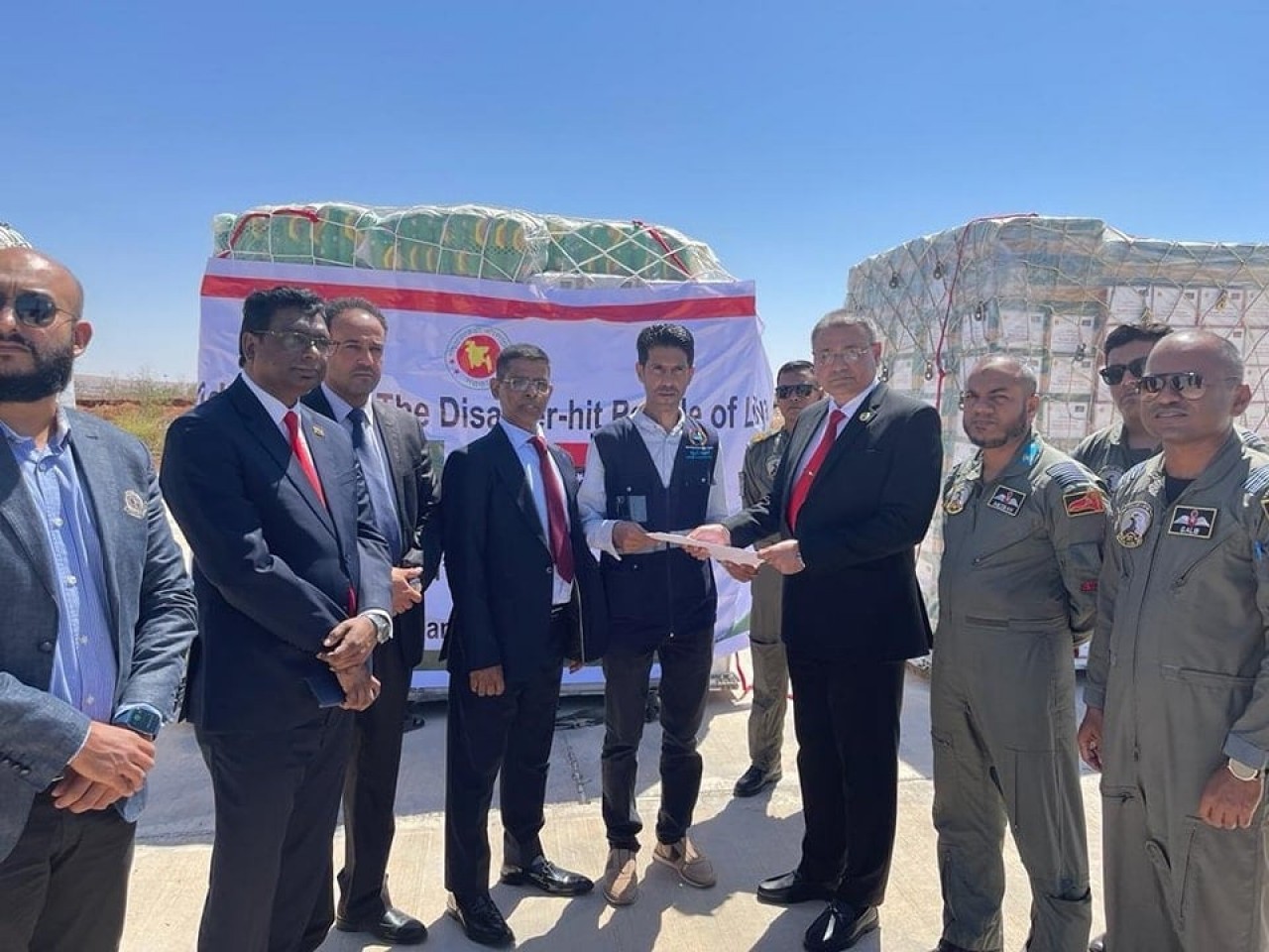লিবিয়ায় ঘূর্ণিঝড় ড্যানিয়েল ও এর প্রভাবে ভয়াবহ বন্যার পরিপ্রেক্ষিতে বাংলাদেশ সরকারের মানবিক ত্রাণ সহায়তা লিবিয়া সরকারের প্রতিনিধিদের কাছে হস্তান্তর করা হয়েছে।