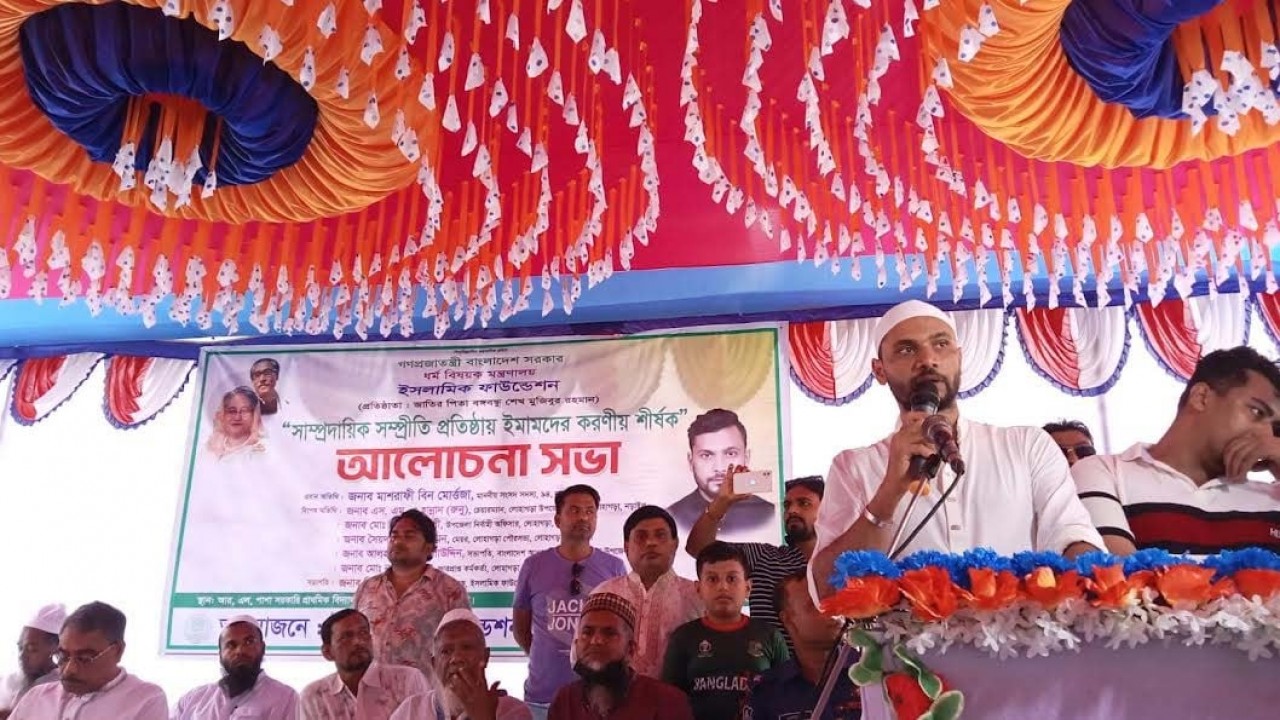 নড়াইল ২ আসনের সংসদ সদস্য ও আওয়ামী লীগের যুব ও ক্রীড়া বিষয়ক সম্পাদক মাশরাফি বিন মর্তুজা বলেছেন, ‘সমাজ থেকে বৈষম্য দূর করতে হলে ইমামদের এগিয়ে আসতে হব। সমাজ পরিবর্তনের ক্ষেত্রে গুরুত্বপূর্ণ ভূমিকা রাখতে পারেন ইমামগণ। সাম্প্রদায়িক সম্প্রীতি প্রতিষ্ঠার ক্ষেত্রেও ইমামদের ভূমিকা অতি গুরুত্বপূর্ণ। ধর্মীয় রীতি-নীতি, বিধি-বিধান এবং ইমামদের পরামর্শ অসাম্প্রদায়িক বাংলাদেশ গড়ার ক্ষেত্রে গুরুত্বপূর্ণ অবদান রাখতে পারে।