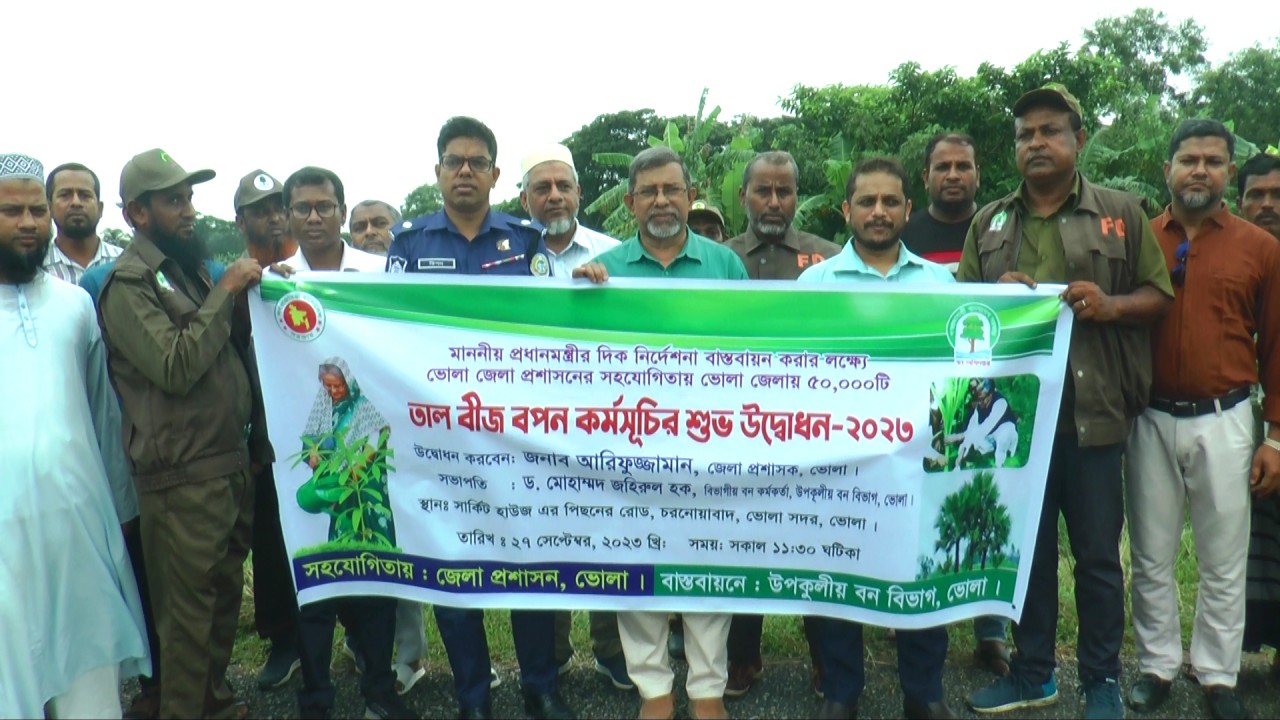 তাই মাননীয় প্রধানমন্ত্রী শেখ হাসিনার দিক নির্দেশনা বাস্তবায়ন করার লক্ষ্যে উপকূলীয় জেলা ভোলায় ৫০ হাজার তাল গাছের বীজ রোপণ কর্মসূচি হাতে নেয়া হয়েছে।