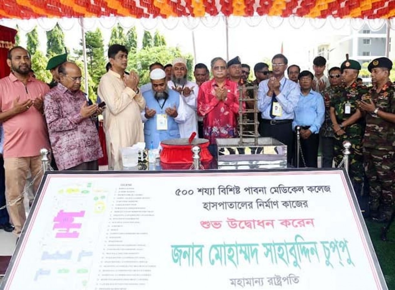 বহু কাক্সিক্ষত ৫০০ শয্যা বিশিষ্ট পাবনা মেডিকেল কলেজ হাসপাতালের ভিত্তিপ্রস্তর স্থাপন করেছেন রাষ্ট্রপতি মো. সাহাবুদ্দিন। এই উপলক্ষে তিনি এক বিশেষ মোনাজাতে অংশ নেন।