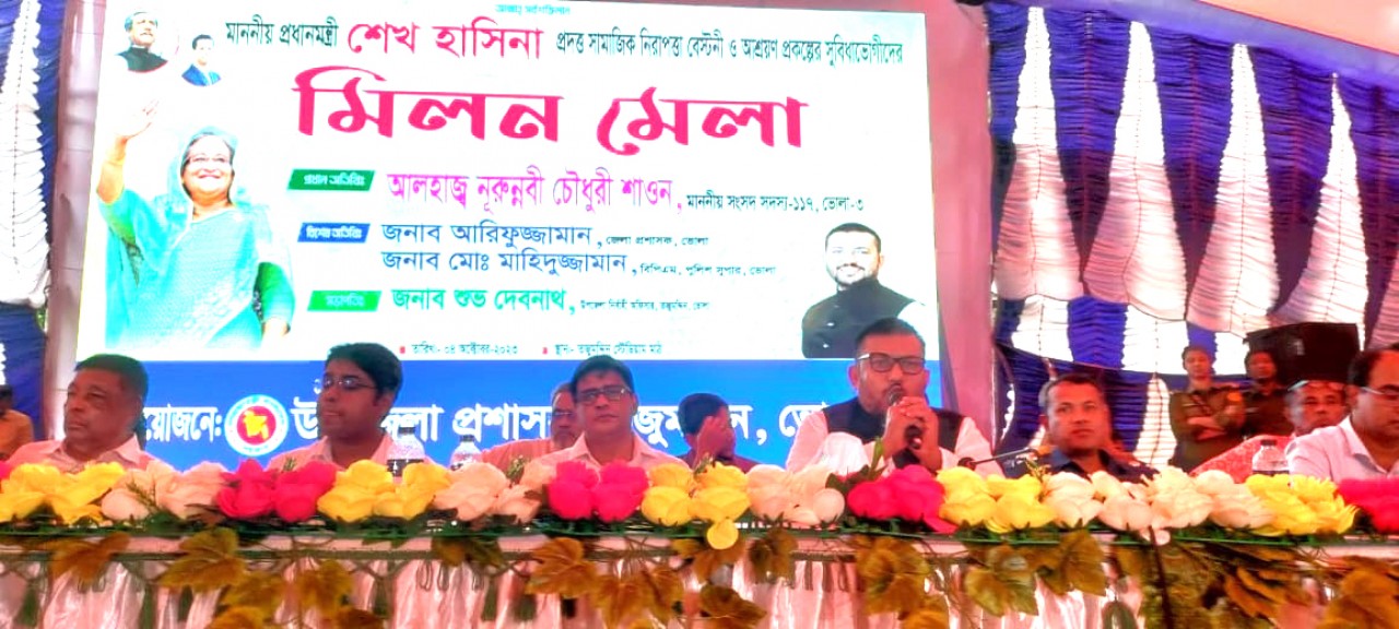 তজুমদ্দিন উপজেলা প্রশাসনের আয়োজনে স্থানীয় ষ্টেডিয়াম মাঠে বুধবার দুপুরে বৈরী আবহাওয়ার মধ্যে মুষলধারে বৃষ্টি উপেক্ষা করে প্রধানমন্ত্রী শেখ হাসিনা প্রদত্ত সামাজিক নিরাপত্তা বেষ্টনী ও আশ্রয়ন প্রকল্পের বয়স্ক ভাতা, প্রতিবন্ধী ভাতা, বিধবা ভাতা সহ সুবিধা ভোগীদের মিলন মেলায় দূর দূরান্ত থেকে আসা বিভিন্ন  বয়সী  প্রায় ৫/৬ হাজার নারী পুরুষের ঢল নামে। সরকারি নানা প্রকল্পের মাধ্যমে উপকৃত বিভিন্ন জনগোষ্ঠীর মানুষ গুলো এসময় প্রধানমন্ত্রী শেখ হাসিনার প্রতি কৃতজ্ঞতা প্রকাশ করেন দারিদ্র্যতার অভিশাপ থেকে ঘুরে দাঁড়ানো তাদের জীবনের দিন বদলের গল্প তুলে ধরেন , বীর নিবাস পাওয়া বীর মুক্তিযোদ্ধা শাহাবুদ্দিন মাষ্টার, সম্ভুপুর ইউনিয়নের নারী উদ্যোক্তা লাকি বেগম, জেলে সুফিয়ান, মোতাহার মাঝি, তৃতীয় লিঙ্গের মনিরসহ অনেকেই।