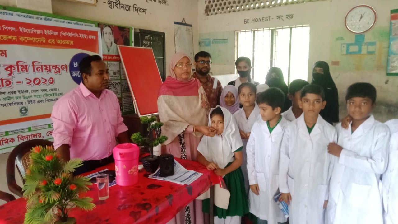 বক্তব্য রাখেন টেকনিক্যাল অফিসার কমিউনিটি মোবিলাইজেশন মোঃ মাসুম বিল্লাহ, সহকারি শিক্ষক মোঃ জাকির হোসেন জুয়েল , উপস্থিত ছিলেন সহকারি শিক্ষিকা রেহানা বেগম, সহকারি শিক্ষক দিপক চন্দ্র রায়। সহযোগিতায় ছিলেন সহকারি টেকনিক্যাল অফিসার (পুস্টি) মোঃ জাহিদ হাসান, শাপলা সামাজিক উন্নয়ন কেন্দ্র (কিশোরী) ও স্কুলের ক্ষুদে ডাক্তাররা। ক্যাম্পেইন এর আওতায় স্কুলের সকল শিক্ষার্থী দের কৃমি প্রতিরোধে প্রযয়োজনীয় স্বাস্থ্যবিধি সম্পর্কে সেশন পরিচালনা করা কৃমিনাশক খাওয়ানে ও লিফলেট বিতরনের মাধ্যমে কৃমির প্রকোপ কমানোর জন্য সবাইকে সচেতন করা হয়।