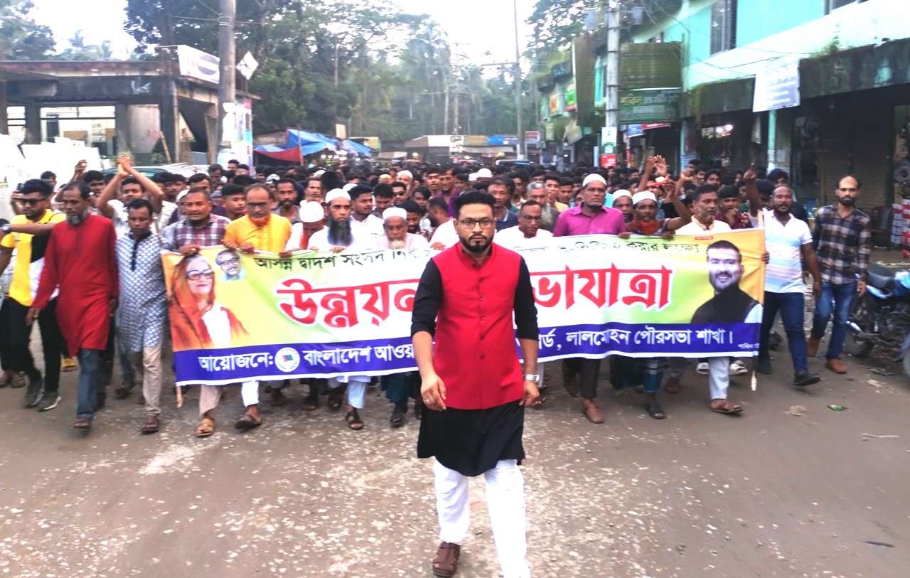 লালমোহন প্রতিনিধি : আসন্ন দ্বাদশ জাতীয় সংসদ নির্বাচনে নৌকার বিজয় নিশ্চিত করার লক্ষ্যে ভোলার লালমোহনে উন্নয়ন শোভাযাত্রা অনুষ্ঠিত হয়েছে। মঙ্গলবার বিকালে পৌরসভার ৪ নম্বর ওয়ার্ডের কাউন্সিলর রায়হান মাসুমের উদ্যোগে সমিতির মাঠ থেকে শোভাযাত্রাটি বের হয়ে গুরুত্বপূর্ণ সড়ক প্রদক্ষিণ করে চৌরাস্তার মোড়ে গিয়ে শেষ হয়।