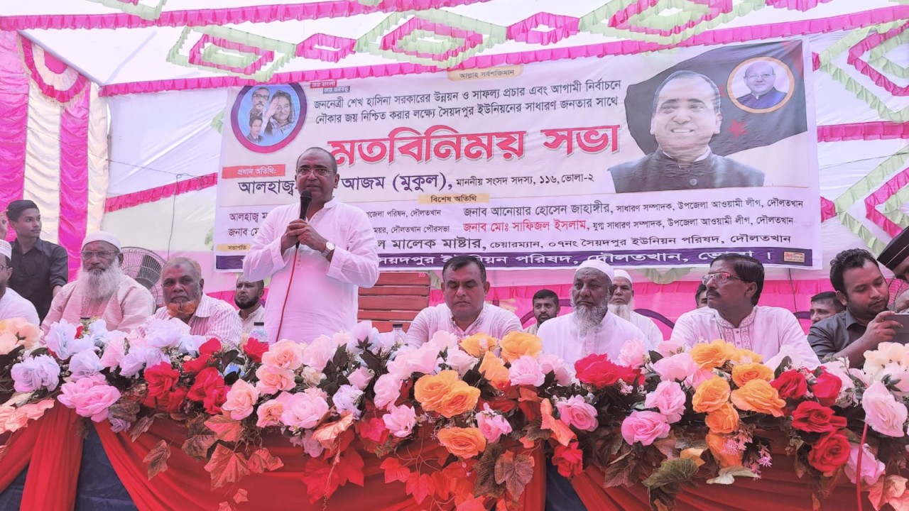 দৌলতখান প্রতিনিধি : ভোলার দৌলতখানে ভোলা-২ আসনের সংসদ সদস্য আলী আজম মুকুল উপজেলার সৈয়দপুর ইউনিয়ন পরিষদের চেয়ারম্যান, সদস্য ও জেলেদের সাথে মতবিনিময় করেছেন। সোমবার সকালে এ উপলক্ষে ইউনিয়ন পরিষদ চত্বরে আয়োজিত ওই ইউপির চেয়ারম্যান আবদুল মালেক মাস্টারের সভাপতিত্বে এমপি মুকুল প্রধান অতিথির বক্তব্য রাখেন। এ সময় তিনি শেখ হাসিনার নেতৃত্বে দেশের সকল ক্ষেত্রে ব্যাপক উন্নয়নের ফিরিস্তি তুলে ধরেন। তিনি বলেন, মাননীয় প্রধানমন্ত্রী শেখ হাসিনা দেশের ভূমিহীন ও গৃহহীনদের বাসস্থানের ব্যবস্থাসহ প্রান্তিক মানুষের সামাজিক সুরক্ষা নিশ্চিতে বিভিন্ন ভাতার ব্যবস্থা করেছেন। এসব উপকারভোগীরা শেখ হাসিনাকে আবারও প্রধানমন্ত্রী হিসেবে দেখতে চায়।