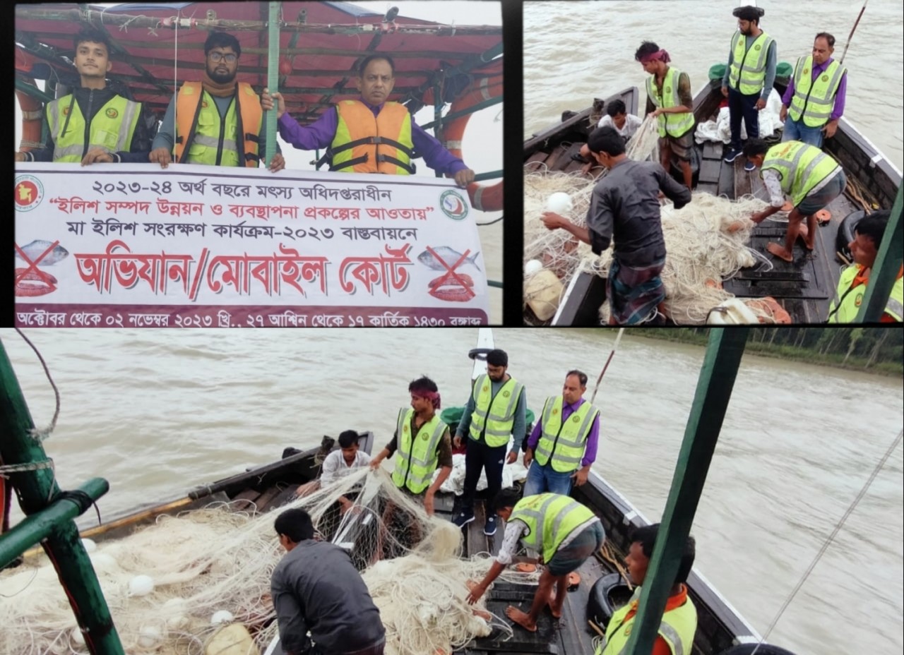 সুত্রে জানা যায়, ঘূর্ণিঝড় হামুনের কারণে আবহাওয়া অধিদপ্তর সমুদ্র বন্দরকে ৭নম্বর মহাবিপদ সংকেতের আওতায় ঘোষনা করার পরও তজুমদ্দিন উপজেলা মৎস্য অফিসের মেরিন ফিশারিজ কর্মকর্তা আল আমিনের নেতৃত্বে মৎস্য অফিসের একটি অভিযানিক দল মা ইলিশ রক্ষার দুসাহসিক অভিযান চালনা করেন। মঙ্গলবার (২৪ অক্টোবর) ভোর ৫টা থেকে মেঘনার কাটাখালী, বাতিরখাল ও বাসনভাঙার চরসহ বিভিন্ন এলাকায় অভিযান পরিচালনা করেন। এ সময় মা ইলিশ শিকারের সময় একটি নৌকা ও পাঁচ হাজার মিটার সুতার জাল আটক করেন। জেলেরা দৌড়ে গহীন জঙ্গলে পালিয়ে যাওয়ায় আটক করতে পারেননি বলে জানান অভিযানে নেতৃত্বদানকারী মেরিন ফিশারিজ কর্মকর্তা। আবহাওয়া প্রতিকুলে থাকায় আটক জাল ও নৌকা উপজেলা মৎস্য অফিসের হেফাজতে রাখা হয়েছে। আবহাওয়া স্বাভাবিক হলে আটক আটক জাল আগুনে পুড়ে ধ্বংস করা হবে বলেও জানা যায়।