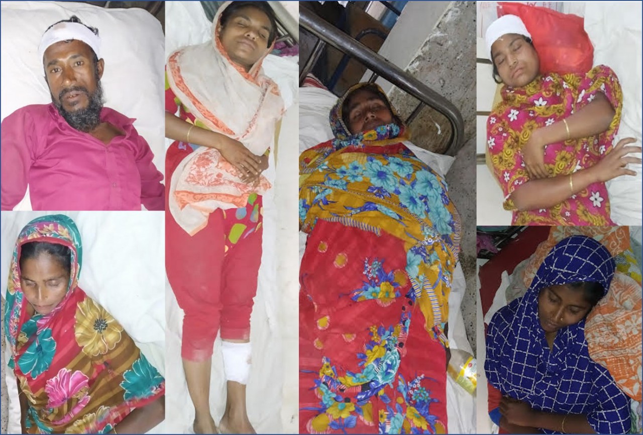 আহতরা হলো, রুমা আক্তার (৩০), শিল্পী (২৮), মাইনউদ্দিন (৪৫), নুর নাহার (৩৫), ফাতেমা (২৫) ও রেনু (৪৫)। তারা দৌলতখান হাসপাতালে চিকিৎসাধীন রয়েছে ।