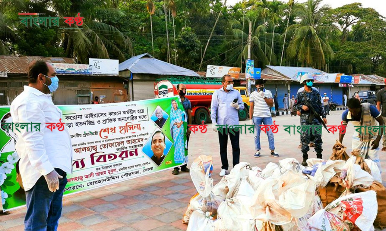বাংলার কন্ঠ ডেস্ক:: করোনা ভাইরাস সংক্রমন প্রতিরোধ ও সামাজিক দূরত্ব বজায় রাখতে প্রধান মন্ত্রী শেখ হাসিনার নির্দেশনা বাস্তবায়নের লক্ষ্যে কর্মহীন হতদরিদ্র মানুষের বাড়ি বাড়ি খাদ্য সহায়তা পৌঁছে দিয়েছেন ভোলা-২ আসনের সংসদ সদস্য আলী আজম মুকুল ও বোরহানউদ্দিন পৌরসভার মেয়র মো. রফিকুল ইসলাম।
