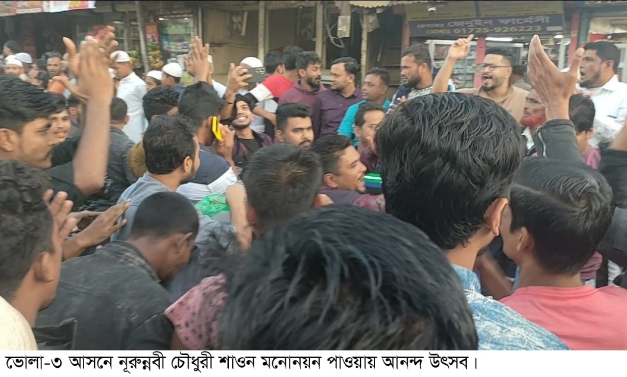 অপর দিকে ভোলা-৩ (লালমোহন ও তজমুদ্দিন) আসনে ৪র্থ বারের মতো নৌকার মনোনয়ন পেলেন নূরুন্নবী চৌধুরী শাওন। রোববার মনোনয়ন নিশ্চিত হওয়ার পর লালমোহন ও তজমুদ্দিন উপজেলায় আনন্দ উল্লাস সৃস্টি হয়েছে। মনোনয়ন ঘোষণার পর তাৎক্ষণিক নেতা-কর্মীরা রাস্তায় নেমে পরেন। শ্লোগানে শ্লোগানে মাতিয়ে তোলেন পুরো উপজেলা। কোথাও কোথাও চলে আতসবাজীর শব্দ।