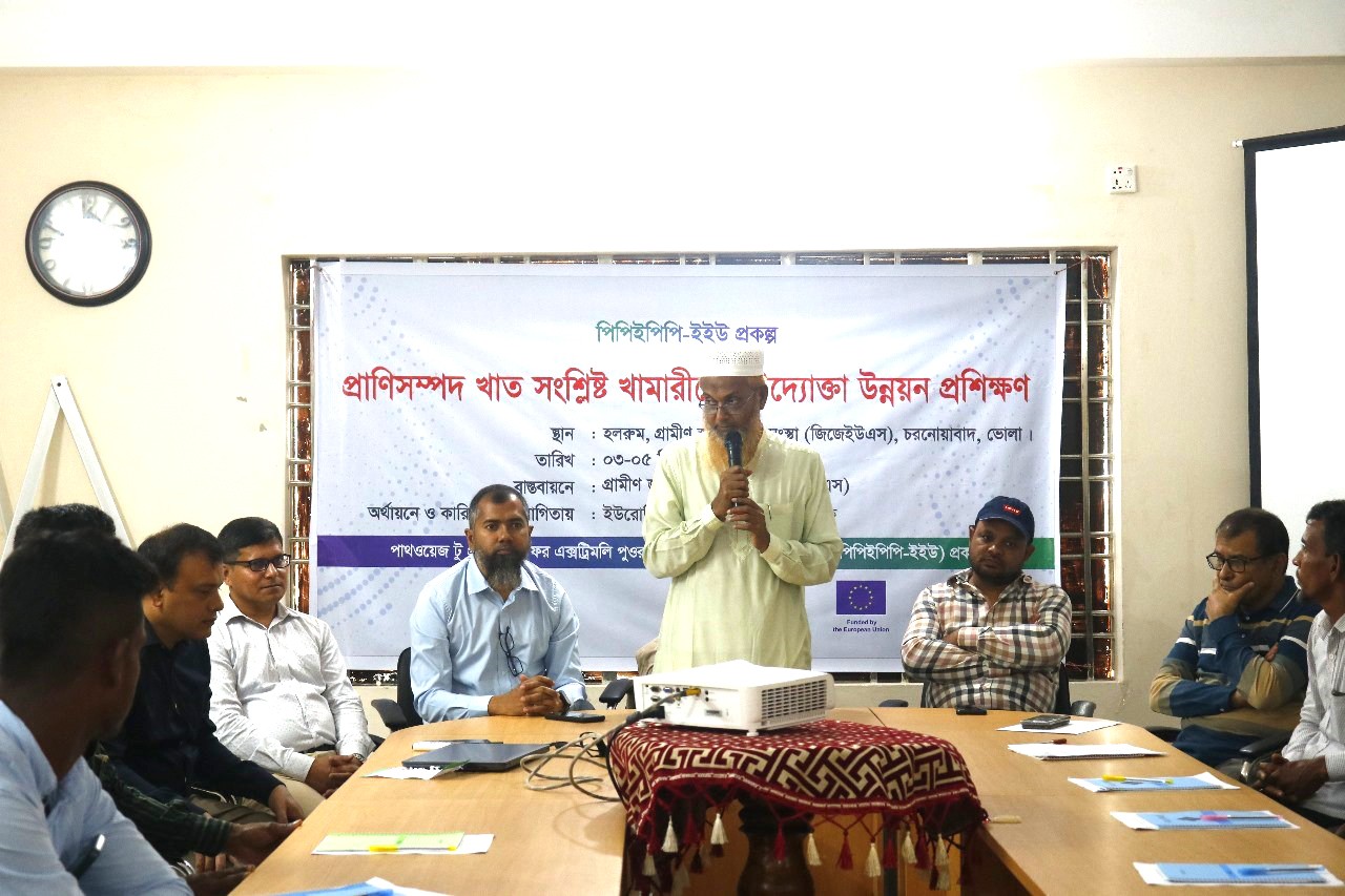 প্রশিক্ষন উদ্ধোধন করেন বাংলাদেশ কৃষি বিশ্ব বিদ্যালয়ের প্রফেসর ড. রায়হান হাবিব। গ্রামীন জন উন্নযন সংস্থার নির্বাহী পরিচালক জাকির হোসেন মহিন এর সভাপতিত্বে বক্তব্য রাখেন পিকেএসএফ এর মহা-ব্যবস্থাপক ড. আব্দুল মালেক, ব্যবস্থাপক মোঃ শাহরিয়ার হায়দার, মোঃ ফরহাদ হোসেন, উপ-ব্যাবস্থাপক মোঃ মেহেদী হাসান ওসমান, পিপিইপিপি-ইইউ প্রকল্পের সিনিয়র প্রোগ্রাম ম্যানেজার মোঃ সেলিম রেজা ও গ্রামীন জন উন্নয়ন সংস্থার পরিচালক এডভোকেসি, ট্রেনিং এন্ড কমপ্লায়েন্স হুমায়ুন কবীর। প্রশিক্ষনে ২৫ জন খামরী অংশ নেয়।