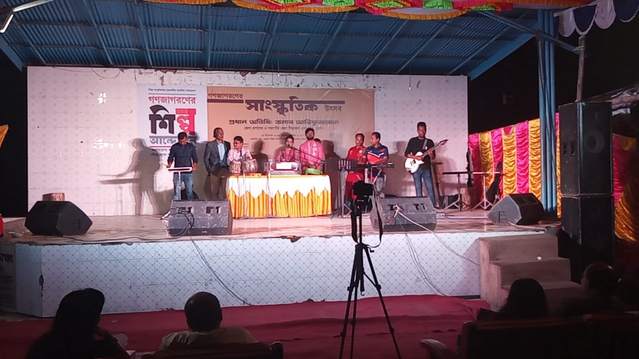 বাংলার কণ্ঠ প্রতিবেদক : বাংলাদেশে মুক্তিযুদ্ধের সময় গণজাগরনে সাংস্কৃতিক সংগঠনগুলোর যে অবদান তা আরও একবার বর্তমান প্রজন্মের কাছে ছড়িয়ে দিতে ভোলায় অনুষ্ঠিত হলো গণজাগরণের সাংস্কৃতিক উৎসব । সোমবার সন্ধ্যায় শিল্পকলা একাডেমির আয়োজনে ভোলা বাংলা স্কুল মাঠে ভাসানী মঞ্চে এ সাংস্কৃতিক উৎসব অনুষ্ঠিত হয়।ভোলা থিয়েটার, ভোর হলো শিশু থিয়েটার, কাব্যাঙ্গন, জীবন পূরাণ আবৃত্তি একাডেমি, সুরের ধারা, ক্রান্তি শিল্পী গোষ্ঠী, স্বপ্নকুঁড়ি, স্বপ্নীল সহ ১৪ টি সাংস্কৃতিক সংগঠনের শিল্পীদের গান,কবিতা আবৃত্তি ও ছোট নাটিকা পরিবেশনের মধ্য দিয়ে মাতিয়ে তোলেন দর্শকদের। অনুষ্ঠানে উপস্থিত ছিলেন, ভোলা পৌর সভার মেয়র মোহাম্মদ মনিরুজ্জামান, বাংলাদেশ শিল্পকলা একাডেমির গবেষণা ও প্রকাশনা বিভাগের পরিচালক জ্যোতিকা জ্যোতি । পরে সংগঠনগুলোর মধ্যে স্মারক প্রদান করা হয়।