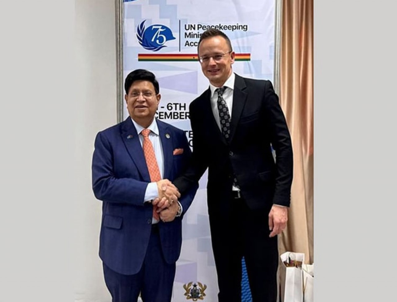 পররাষ্ট্রমন্ত্রী ড. এ কে আব্দুল মোমেন বুধবার ঘানার আক্রায় তার হাঙ্গেরির প্রতিপক্ষ পিটার সিজ্জার্তোর সঙ্গে বৈঠক করেন।