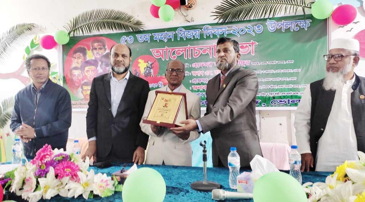 মলয় দে : মহান বিজয় দিবস উপলক্ষে ভোলা সরকারি কলেজে আলোচনা সভা অনুষ্ঠিত হয়েছে। শনিবার ১৬ই ডিসেম্বর সকালে কলেজের আয়োজনে একাডেমিক ভবনে এ আলোচনা সভা হয়েছে। ভোলা সরকারি কলেজের সাহিত্য ও সাংস্কৃতিক কমিটির আহবায়ক ও সহযোগী অধ্যাপক মিজানুর রহমানের সভাপতিত্বে অনুষ্ঠানে প্রধান অতিথির বক্তব্য রাখেন,কলেজটির অধ্যক্ষ প্রফেসর আবদুল গফুর। বিশেষ অতিথি হিসেবে বক্তব্য রাখেন, ভোলা প্রেসক্লাব সভাপতি ও দৈনিক বাংলার কন্ঠের স¤পাদক বীর মুক্তিযোদ্ধা এম.হাবিবুর রহমান,উপাধ্যক্ষ প্রফেসর মোঃ এনায়েত উল্যাহ,কলেজটির শিক্ষক পরিষদের স¤পাদক মোহাম্মদ উল্যাহ।