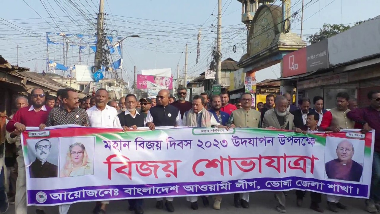 তোফায়েল আহমেদ আরো বলেন, বিশ্বের মানুষ বলে বাংলাদেশ ইতিহাসে রোল মডেল। বাংলাধেকে অনুকরণ করা যায়। সেই বাংলাদেশ আজ প্রধানমন্ত্রীর নেতৃত্বে অনেক উন্নত হয়েছে। আজ ঘরে ঘরে বিদ্যুৎ, গ্রামে গ্রামে রাস্তাঘাট পুল কালভাট আমরা নির্মান করেছি। আমরা আশা করি এই বাংলাদেশ পৃথিবীর মধ্যে অন্যতম শ্রেষ্ঠ রাষ্ট্র হবে। আমরা এখন উন্নয়নশীল দেশ। আমরা হবো উন্নত সম্বৃদ্ধ সোনার বাংলা। এসময় উপস্থিত ছিলেন, ভোলা সদর উপজেলা আওয়ামীলীগের সভাপতি ও সদর উপজেলা চেয়ারম্যান মো: মোশারেফ হোসেন, জেলা আওয়ামীলীগের সহ সভাপতি দোস্ত মাহামুদ, এ্যাডভোকেট আশরাফ হোসেন লাভু, সাধারণ সম্পাদক মইনুল হোসেন বিপ্লব, সদর উপজেলা আওয়ামীলীগের সম্পাদক নজরুল ইসলাম গোলদার, জেলা আওয়ামীলীগের যুগ্ম সাধারণ সম্পাদক জহুল ইসলাম নকিব, আলহাজ মো: ইউনুস,সাংগঠনিক সম্পাদক শফিকুল ইসলাম, সদর উপজেলা আওয়ামীলীগের সাংগঠনিক সম্পাদক আজিজুল ইসলাম প্রমুখ। এদিকে বিজয় শোভা যাত্রায় আওয়ামীলীগের বিভিন্ন অঙ্গ সংগঠনের হাজার হাজার নেতাকর্মীরা অংশ নেয়।