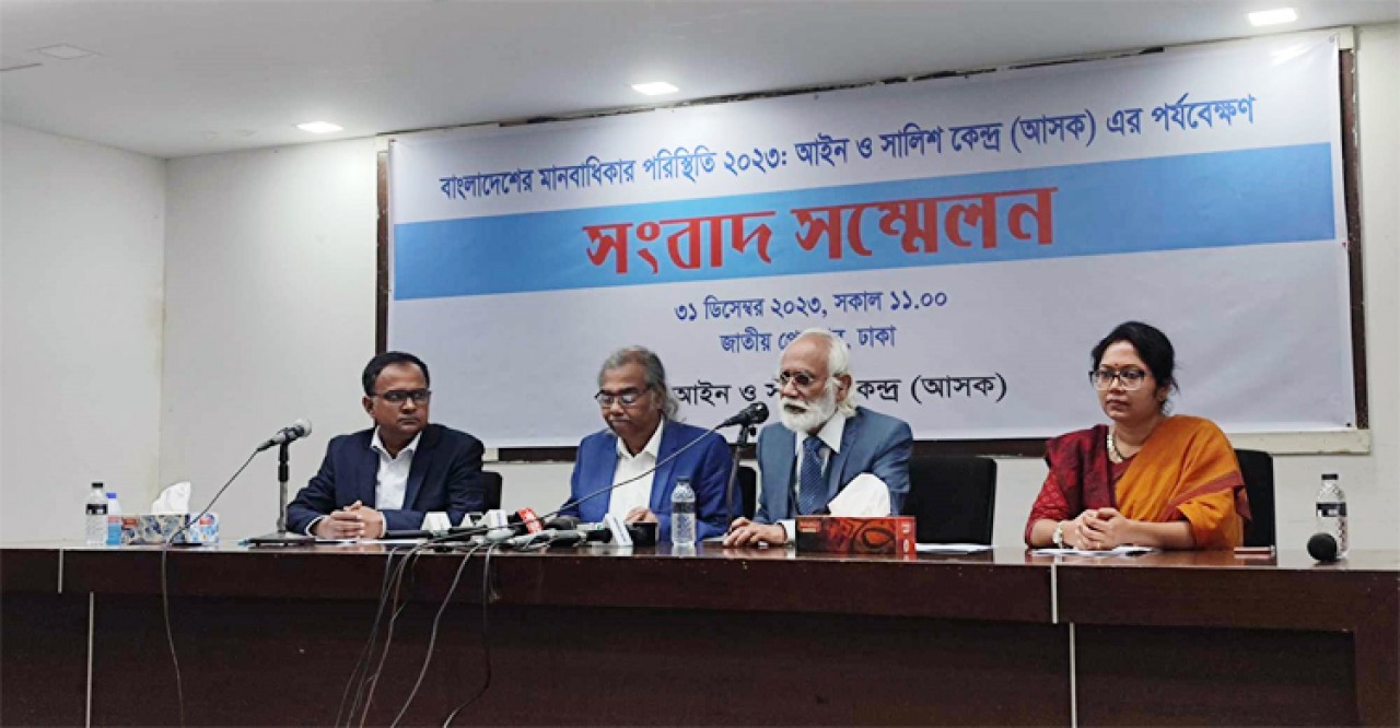 রোববার (৩১ ডিসেম্বর) জাতীয় প্রেস ক্লাবের জহুর হোসেন চৌধুরী হলে ‘বাংলাদেশের মানবাধিকার পরিস্থিতি ২০২৩’ শীর্ষক এক সংবাদ সম্মেলনে লিখিত বক্তব্যে আসকের নির্বাহী পরিচালক ফারুক ফয়সাল এ তথ্য তুলে ধরেন।