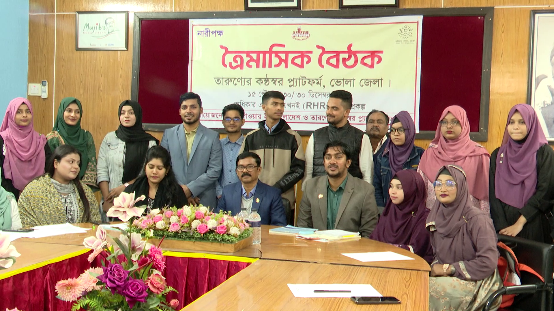 বাংলার কণ্ঠ প্রতিবেদক : ভোলায় কিশোর-কিশোরী,তরুন ও যুবদের ক্ষমতায়নের মাধ্যমে যৌন ও প্রজনন স্বাস্থ্য এবং অধিকার সচেতনতায় দক্ষতবৃদ্ধিতে তারুণ্যের কণ্ঠস্বর প্ল্যাটফর্মের এর ত্রৈ-মাসিক সভা অনুষ্ঠিত হয়েছে।