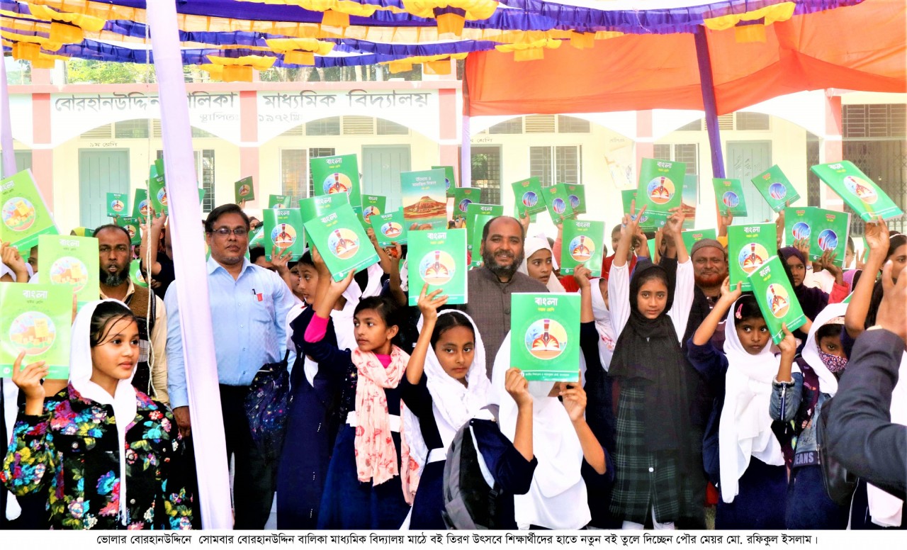 বোরহানউদ্দিন প্রতিনিধি: ভোলার বোরহানউদ্দিন উপজেলায় সারা দেশের সাথে একযোগে উৎসবমুখর পরিবেশে নতুন বই বিতরণ উৎসব অনুষ্ঠিত হয়েছে। সোমবার সকাল ১১ টায় বোরহানউদ্দিন বালিকা মাধ্যমিক বিদ্যালয়ে পৌর মেয়র মো. রফিকুল ইসলাম প্রধান অতিথি হিসেবে উপস্থিত থেকে শিক্ষার্থীদের হাতে নতুন বই তুলে দিয়ে বই উৎসবের উদ্বোধন করেন।