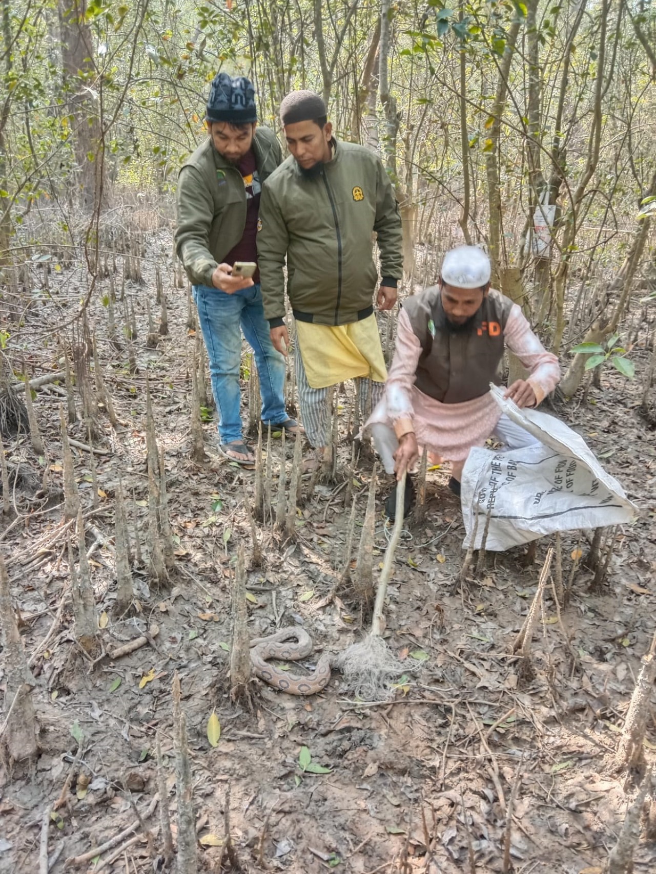 বনবিভাগের রামনেওয়াজ বিটের কর্মকর্তা জাহিদুল ইসলাম মিলন সাংবাদিকদের জানান, কাউয়ারটেক নদীর পাড়ে পরিত্যক্ত জালে অজগর সাপ আটকানো অবস্থায় রয়েছে বলে রামনেওয়াজ বনবিভাগের বিট কার্যালয়ে এসে খবর দেয় নদীরপাড় সংলগ্ন গ্রামের একাধিক বাসিন্দা। পরে বনবিভাগের সদস্যরা নদীরপাড়ে জালে আটকানো সাপটি অজগর নয়, এটি পৃথিবীর সবচেয়ে ভয়ংকর সাপ রাসেল ভাইপার বলে শনাক্ত করা হয়। পরে বিকালে সাপটি উদ্ধার করে রামনেওয়াজ বিটের বনবিভাগের কর্মকর্তারা সোনারচর সংরক্ষিত বনাঞ্চলে অবমুক্ত করে।